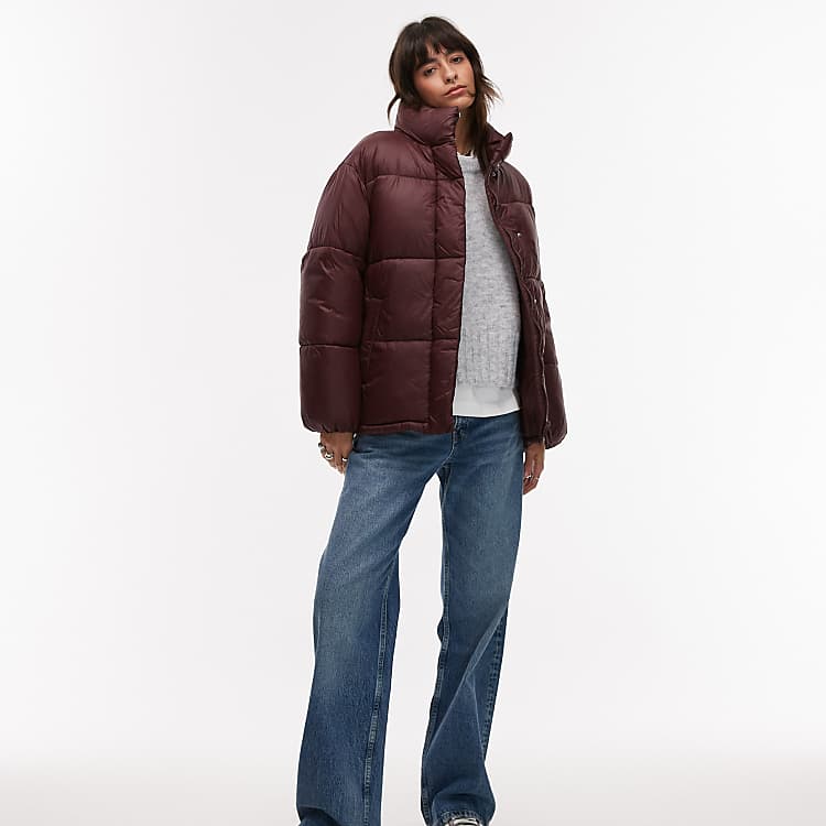 Abrigo acolchado burdeos de corte holgado extragrande con solapas de Mango | ASOS