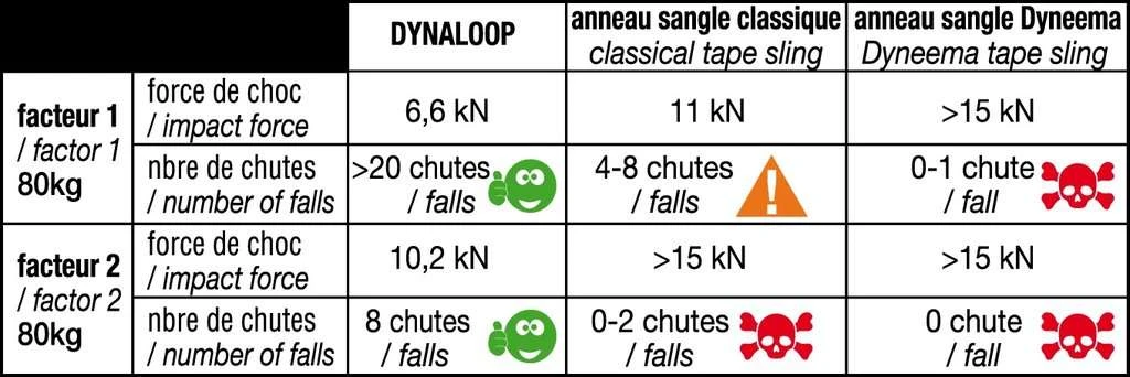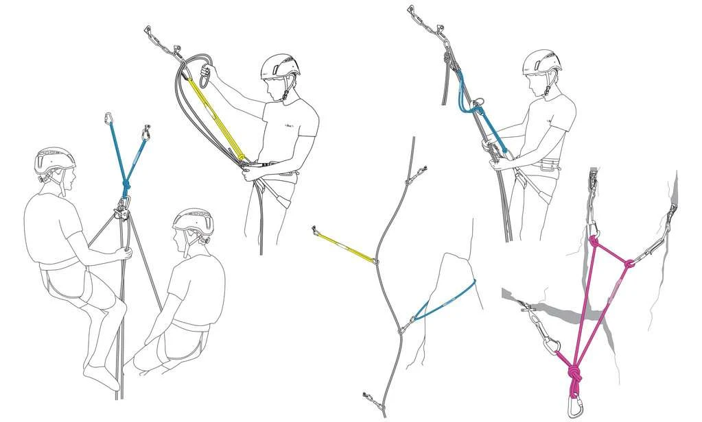 Anillo dinámico de cordino para reunión, como protección o alargue durante la escalada.
