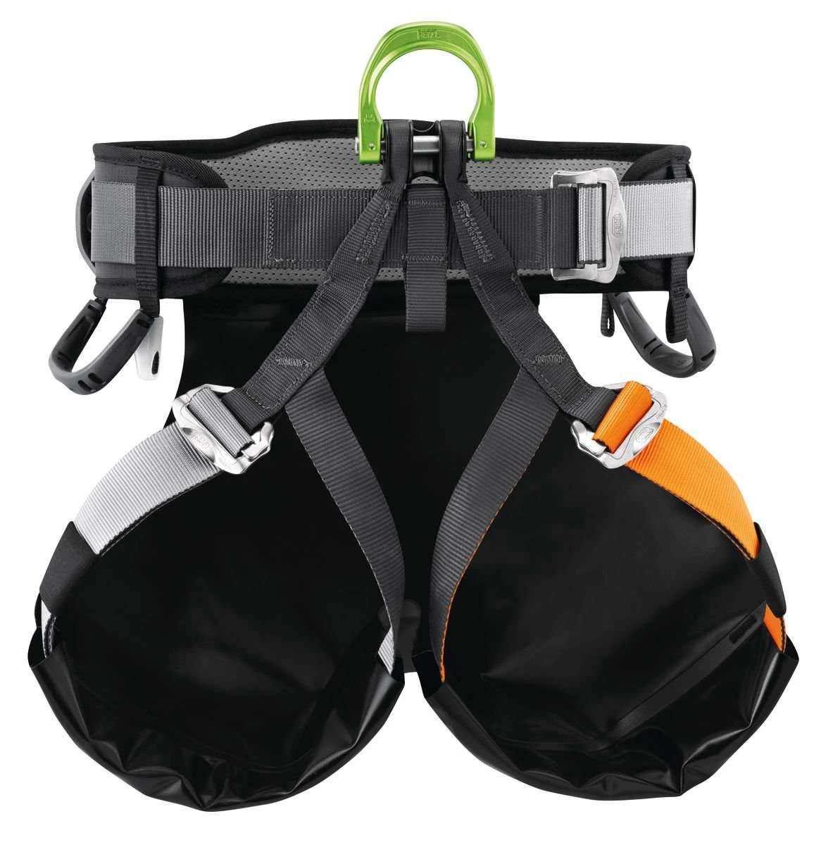 - Punto de enganche ventral ergonómico y posición alta para facilitar la conexión del descensor y optimizar el confort al rapelar. Además, cuenta con un cierre que permite una integración óptima del elemento de amarre o de un bloqueador ventral CROLL S o L.