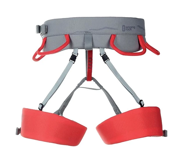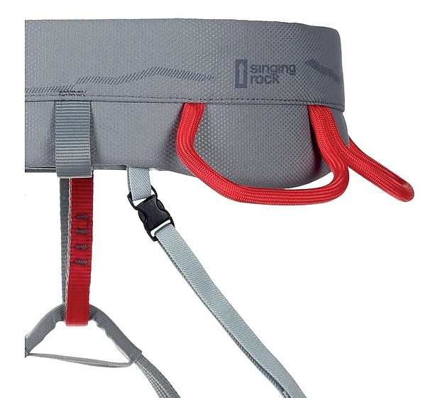 - El diseño del arnés Singing Rock Pearl ha sido mejorado, cambiando la cinta interna del cinturón lumbar y las perneras por dos cintas que se ubican en los bordes y reparten la carga de forma eficiente, garantizando la comodidad durante la suspensión.
