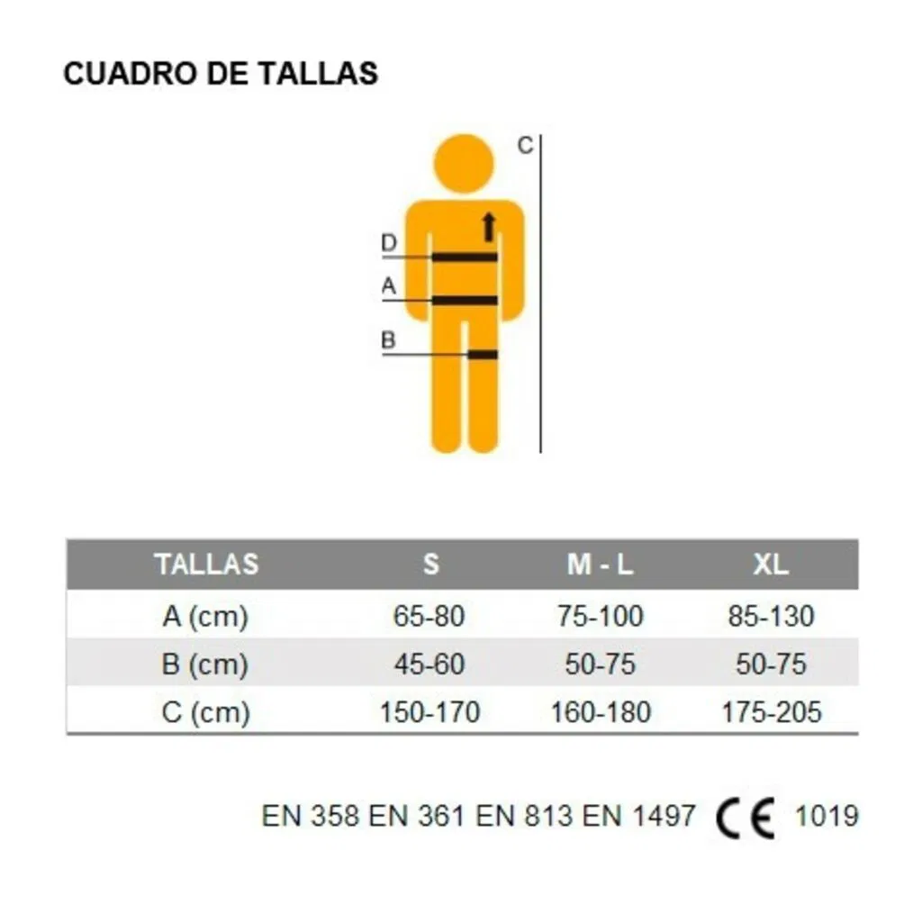 - Este arnés cumple con las normativas EN 358, EN 361, EN 813 y EN 1497, asegurando su uso en tareas de posicionamiento, detención de caídas y rescate en espacios confinados. Está fabricado con materiales de alta resistencia, incorpora hebillas Easy-Lock para una regulación sencilla y rápida y cuenta con recubrimiento de poliéster altamente resistente a la abrasión, garantizando una durabilidad excepcional en entornos exigentes.
