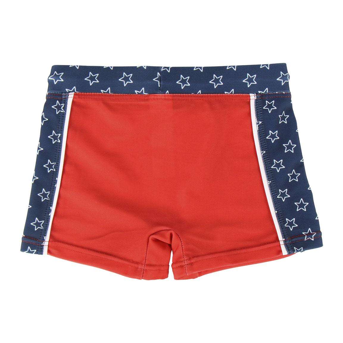 Precioso Bañador para niño de Mickey Mouse con un bonito diseño en color rojo y azul con diferentes dibujos de Mickey.