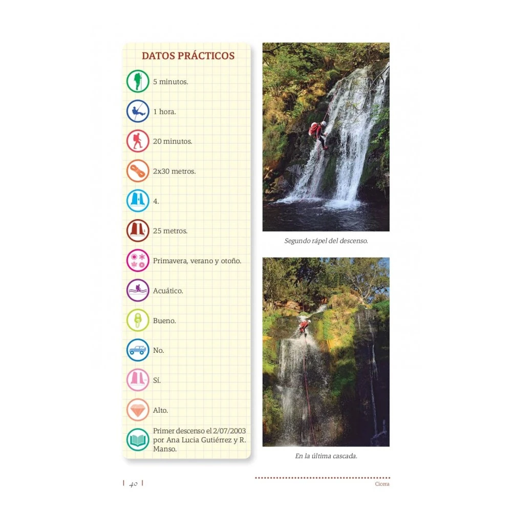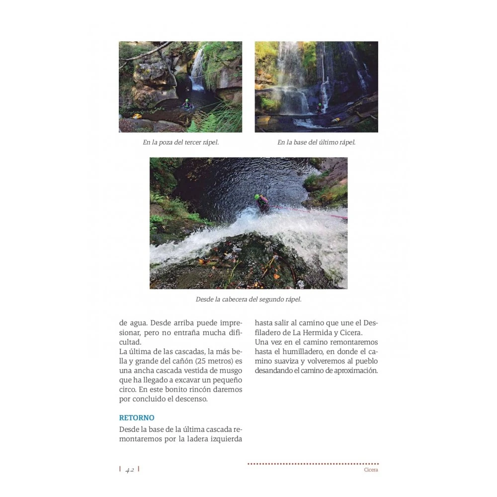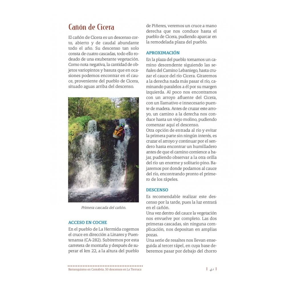 - El lector en esta obra encontrará toda la información necesaria para afrontar el descenso de 50 barrancos en la Tierruca, esperando que sus cauces sean recorridos con la misma pasión, admiración y respeto con el que lo hicieron los autores de esta obra.