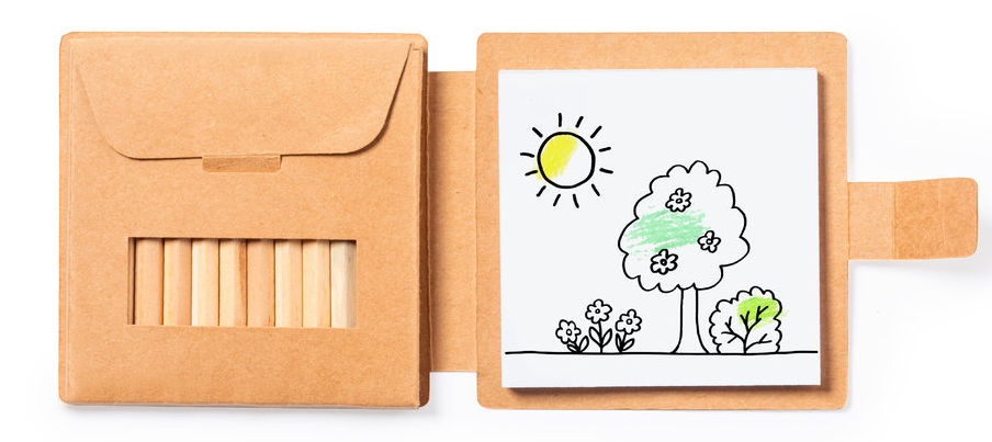 - Set para colorear fabricado en cartón reciclado y con cinta de cierre en solapa.