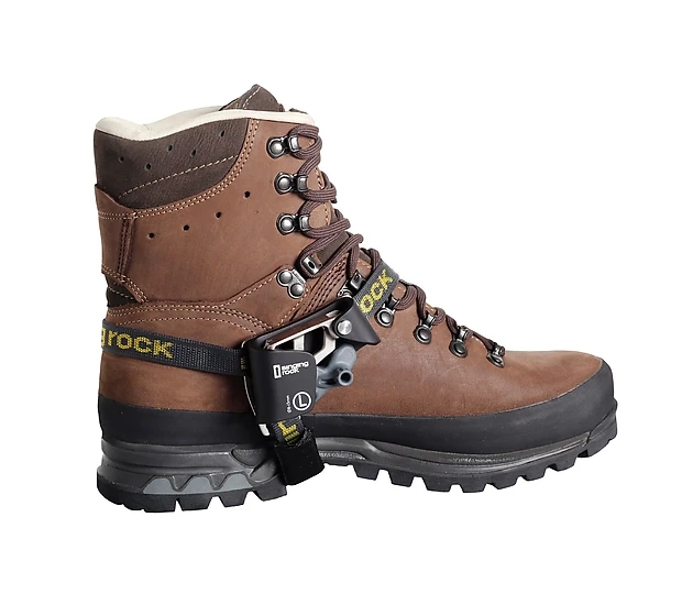 - Disponible tanto para el pie derecho como para el pie izquierdo, este dispositivo se usa junto con el bloqueador ventral y un puño bloqueador. Su diseño está pensado para cuerdas dinámicas y semiestáticas de 8-13 mm de diámetro.