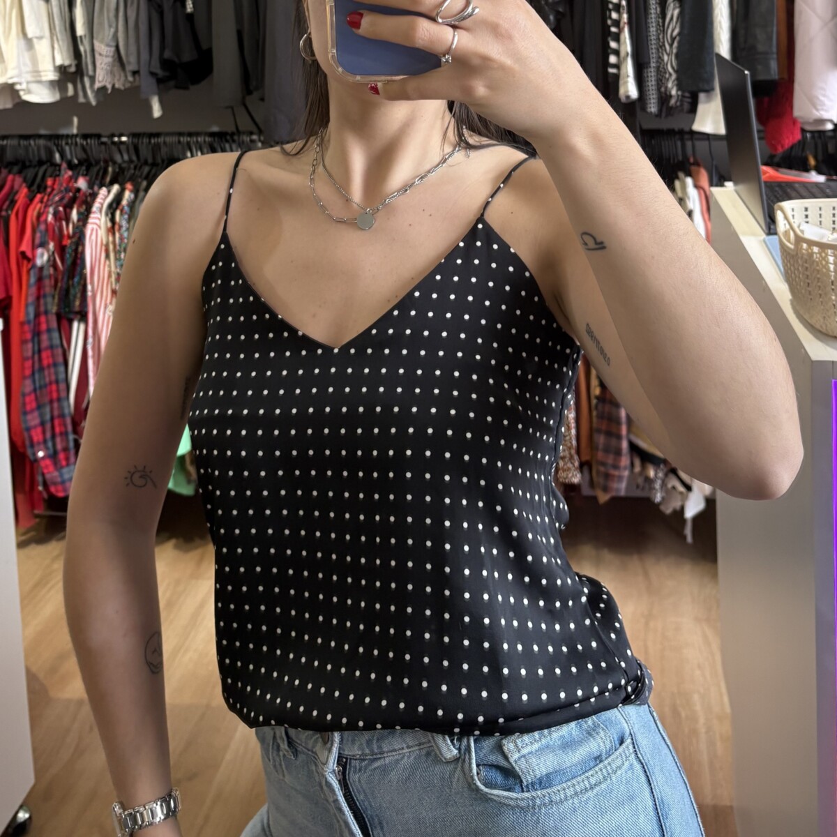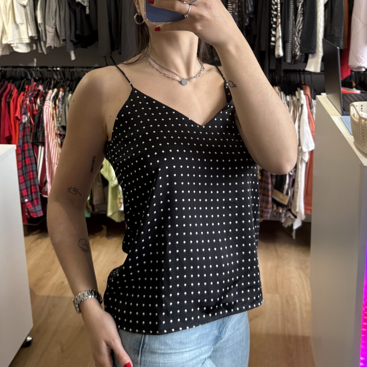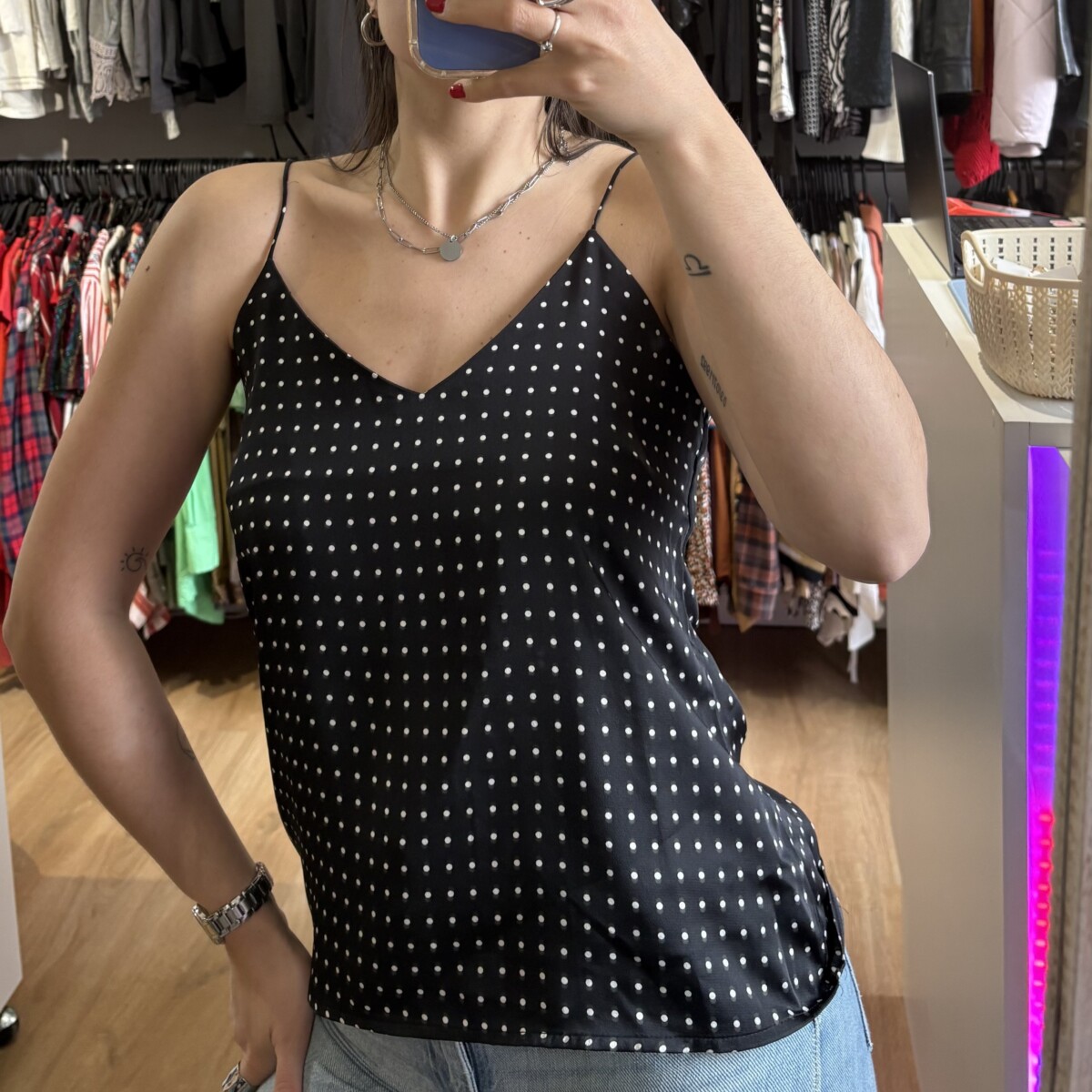 Blusa Daniel Cassin negra con lunares, con etiqueta