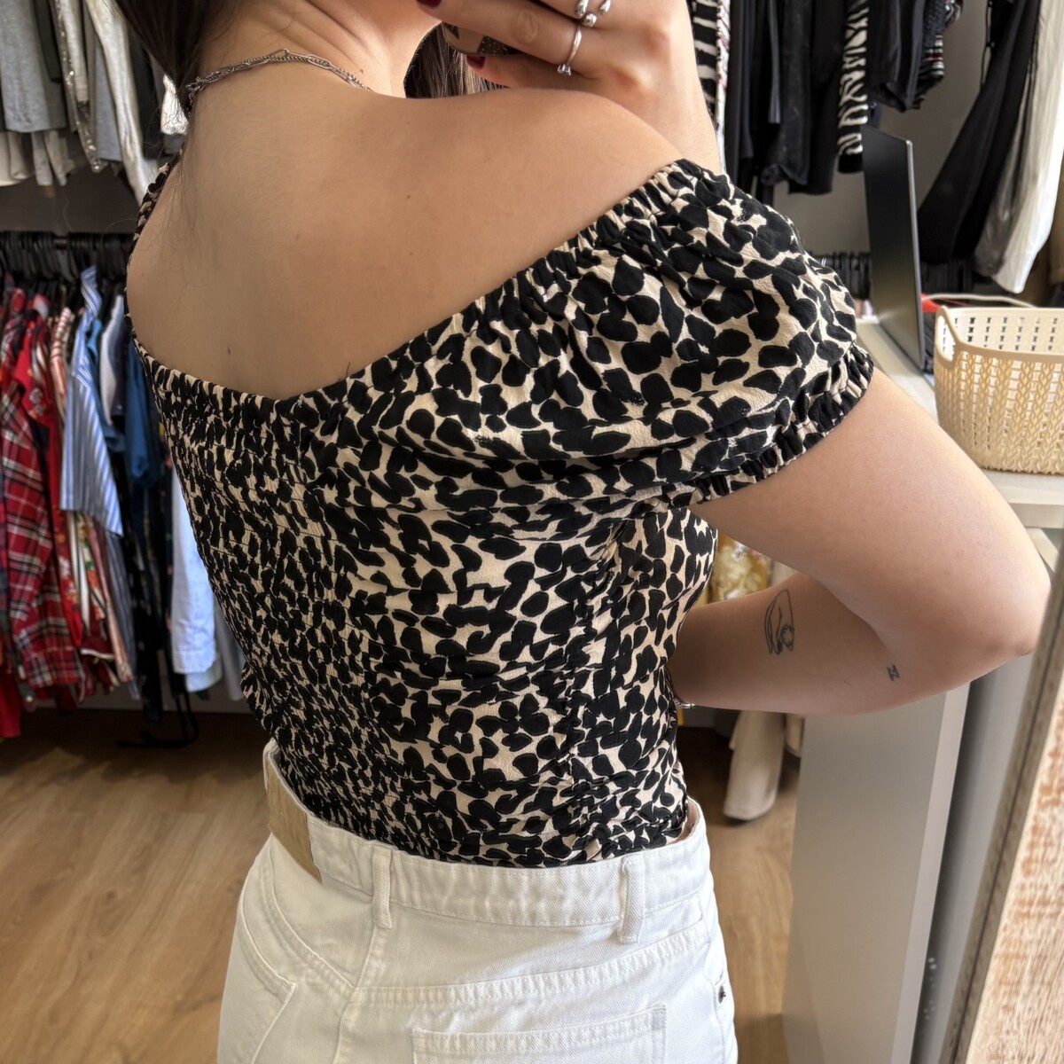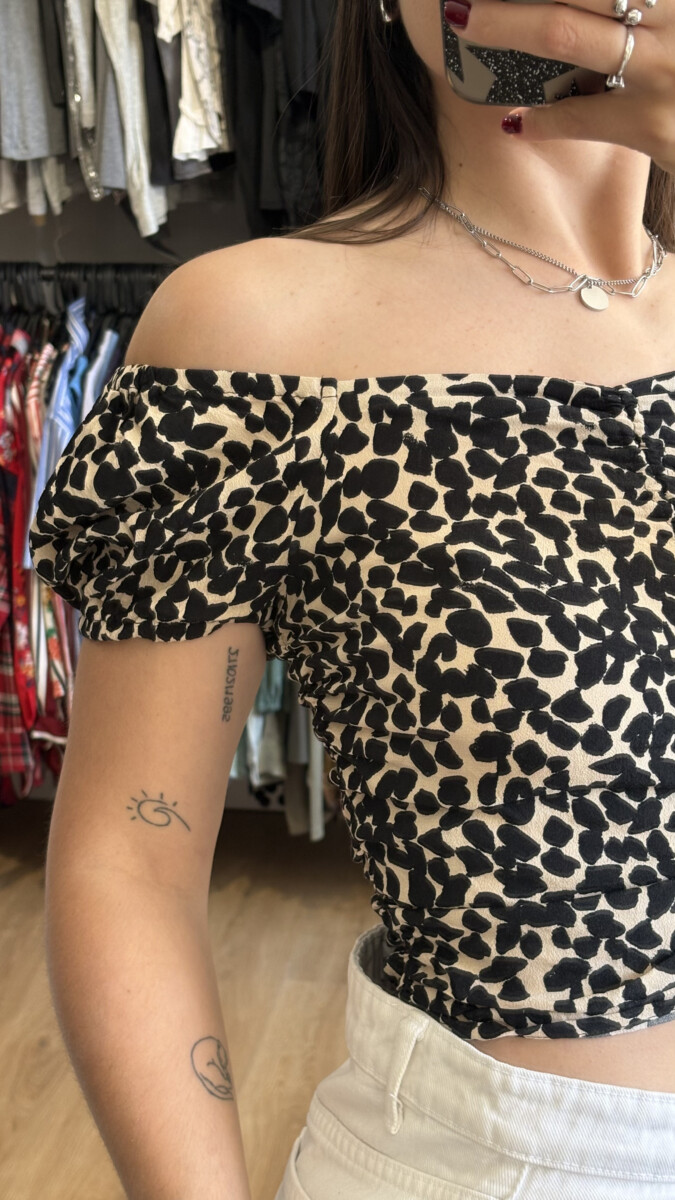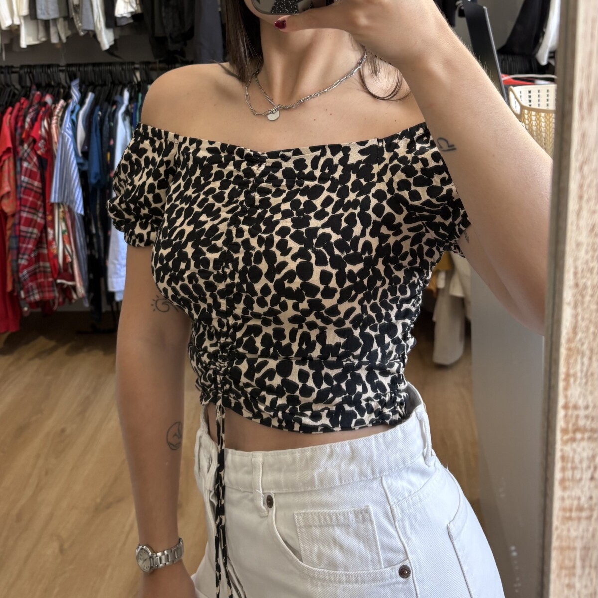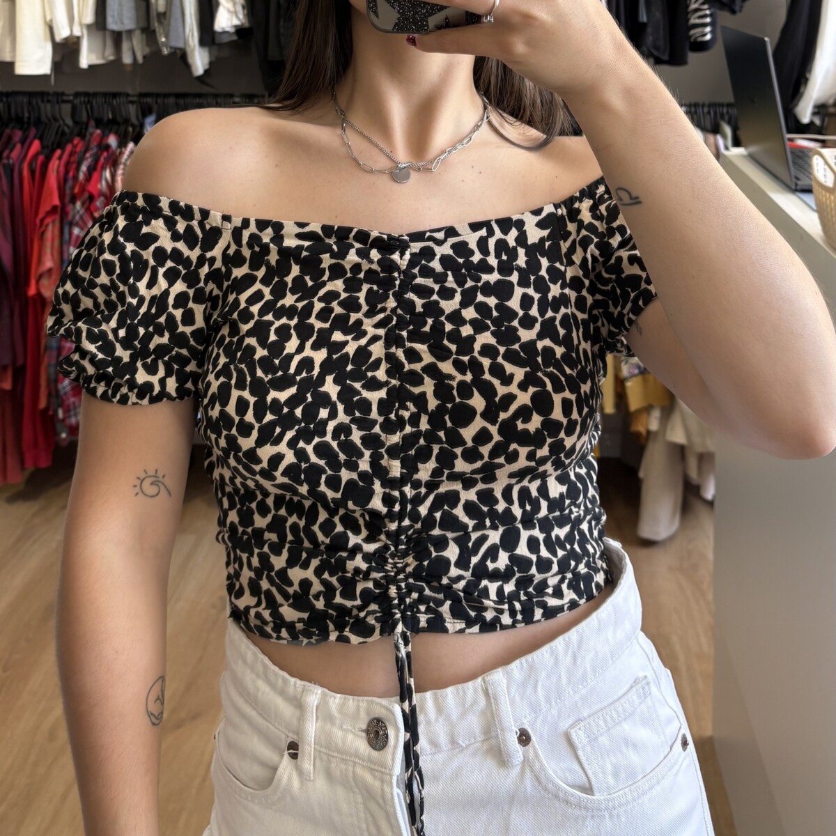 • Color beige con “manchitas” negras y frunce adelante ajustable