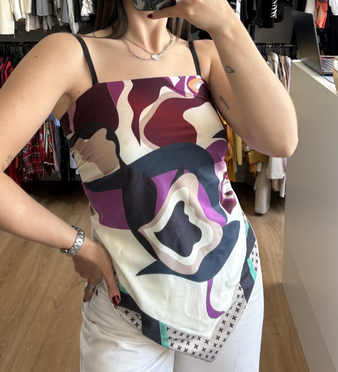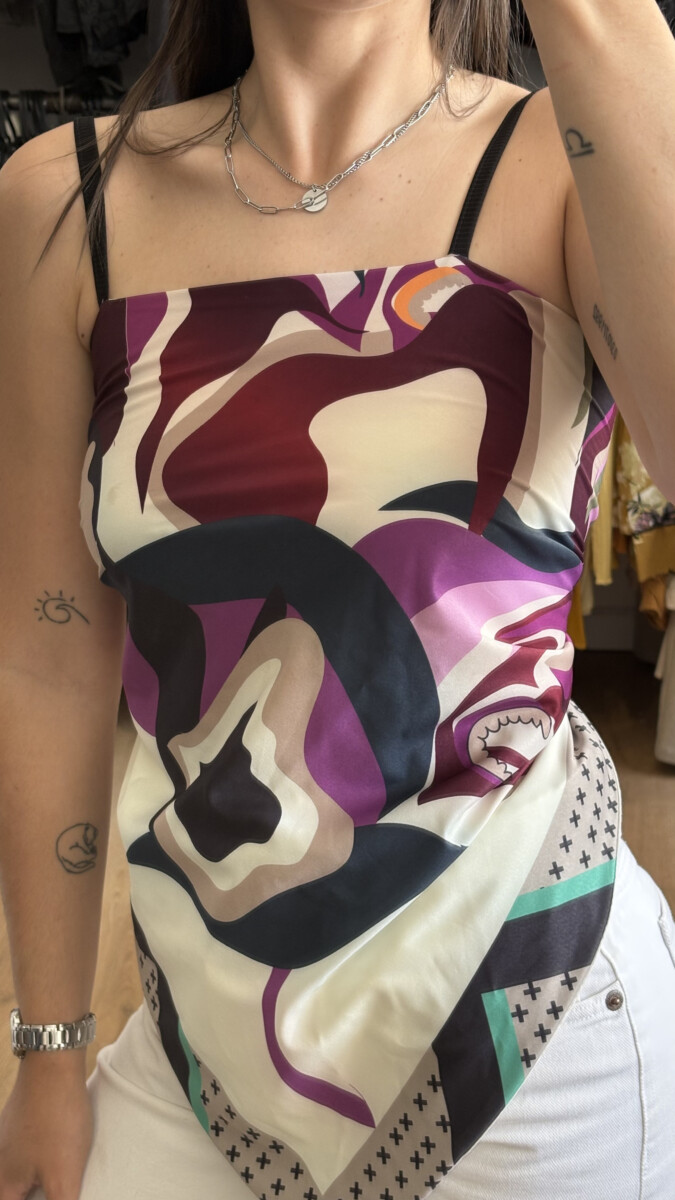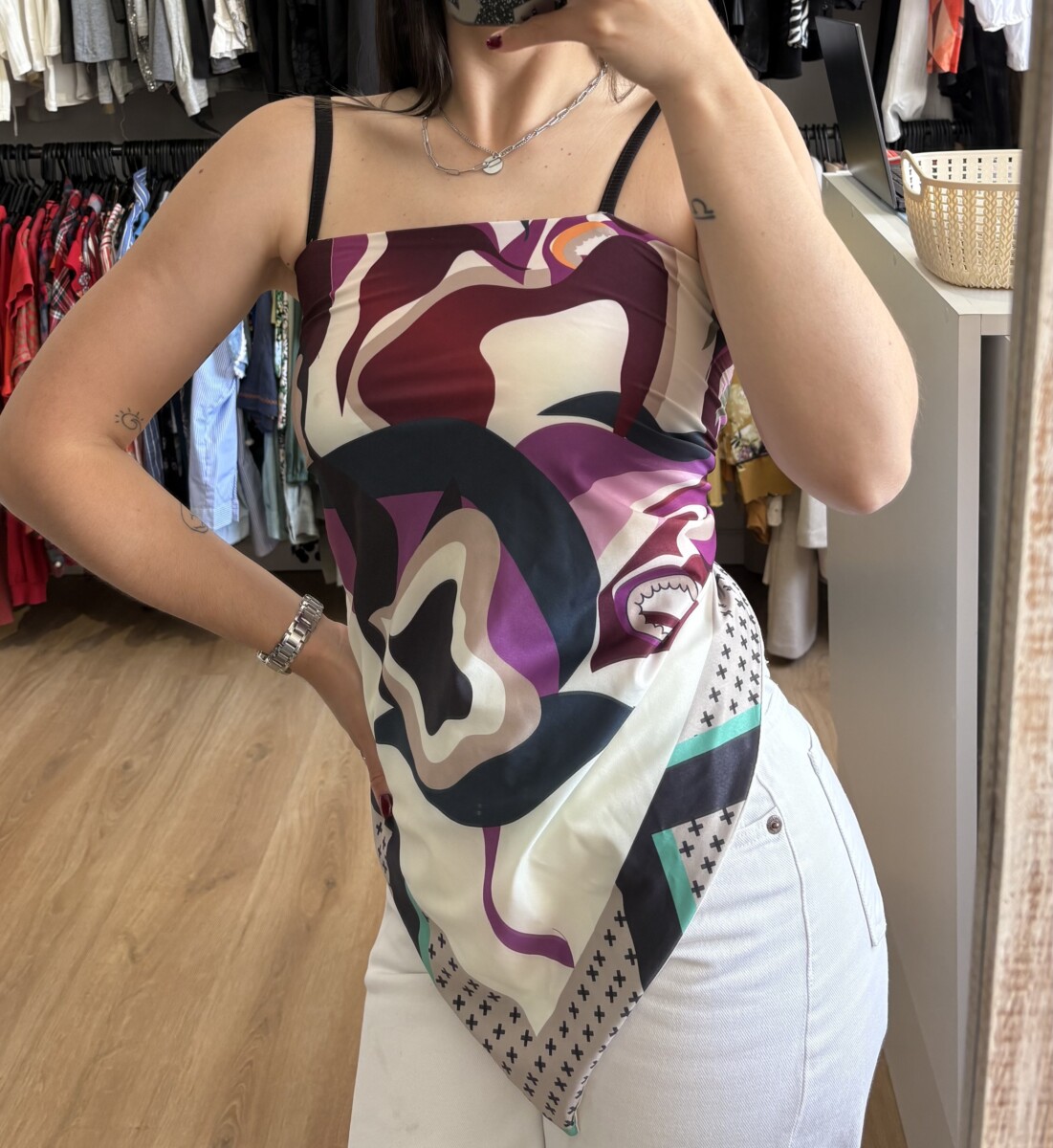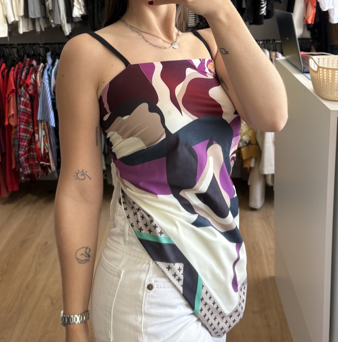 • Blusa estilo pañuelo atada atrás, marca Mandinga