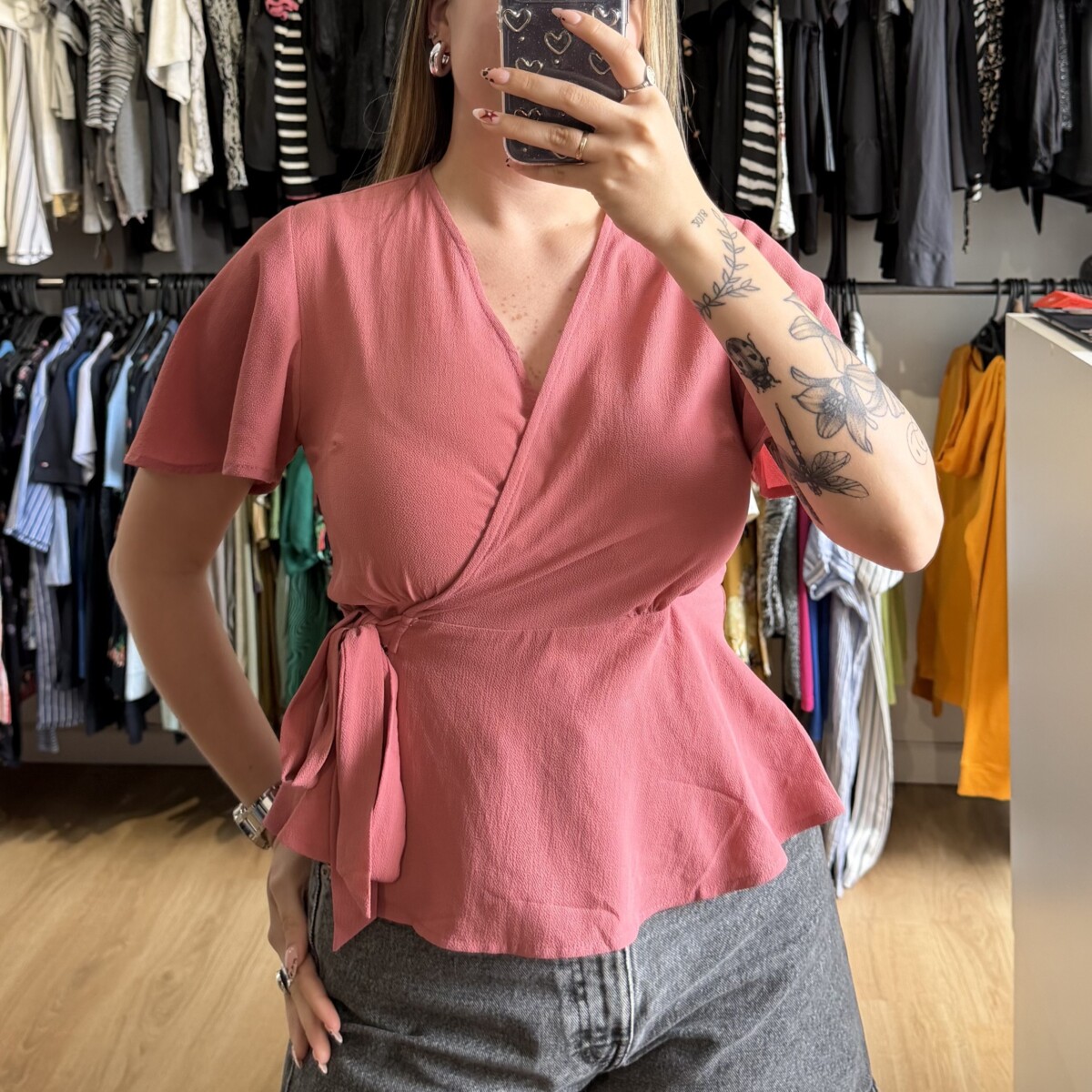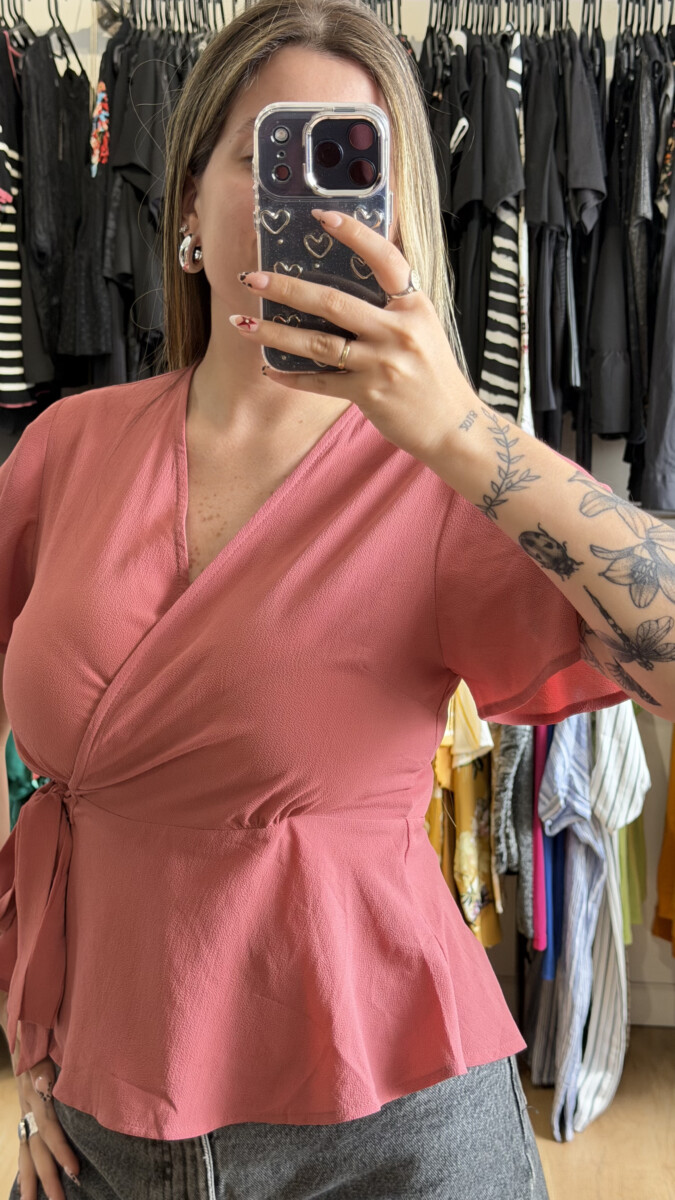 • Color rosa, escote en V