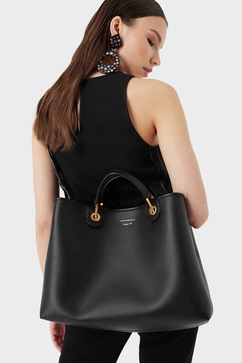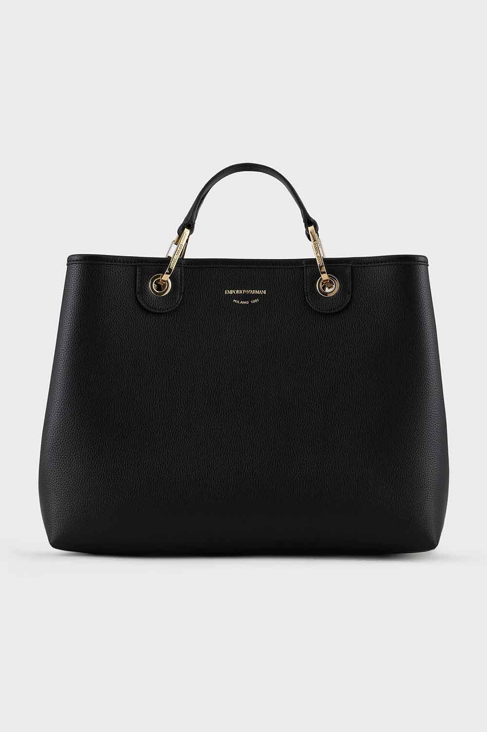 La selección Essentials se consolida como una declaración de estilo atemporal: una propuesta caracterizada por la elegancia y la funcionalidad, adecuada para múltiples combinaciones y ocasiones. MyEA Bag es el bolso icónico de Emporio Armani por excelencia: elige el modelo y enriquécelo con accesorios que te reflejen. Bolso de mano modelo mediano con acabado en estampado de ciervos, cierre de imán y logo serigrafiado. Artículo adornado con mosquetones dorados y etiqueta a juego con el bolso, extraíble y con logo de letras en relieve. Bolsa interna coordinada con cremallera. Provisto de una correa para el hombro extraíble con logo rosa y un interior de bolso de cuero. Dimensiones: 37,5 x 27 x 11,5 cm.