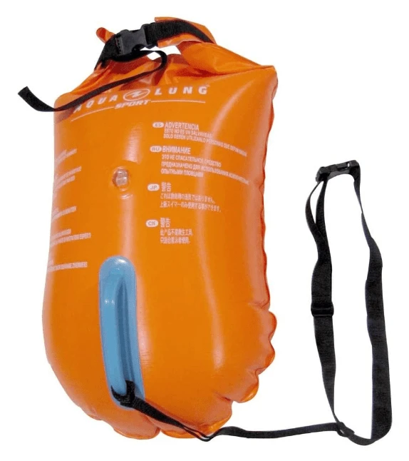 - Incluye una línea de remolque y un cinturón ajustable que se usa alrededor de la cintura. Sin embargo, la resistencia en el agua es agradablemente baja, ya que la bolsa IDry tiene doscámaras de aire para una alta flotabilidad.2 cámaras de aire con válvula de seguridad