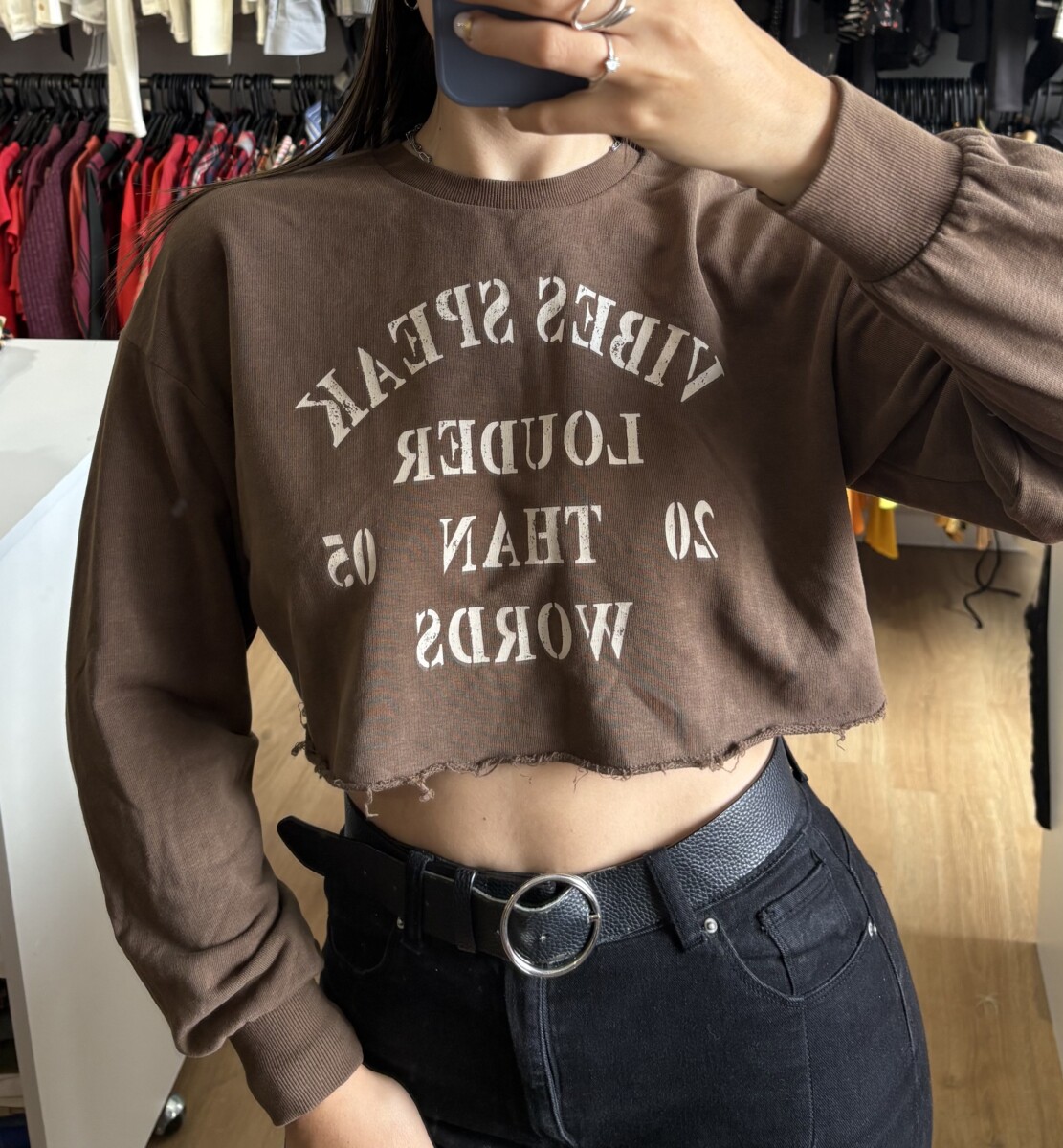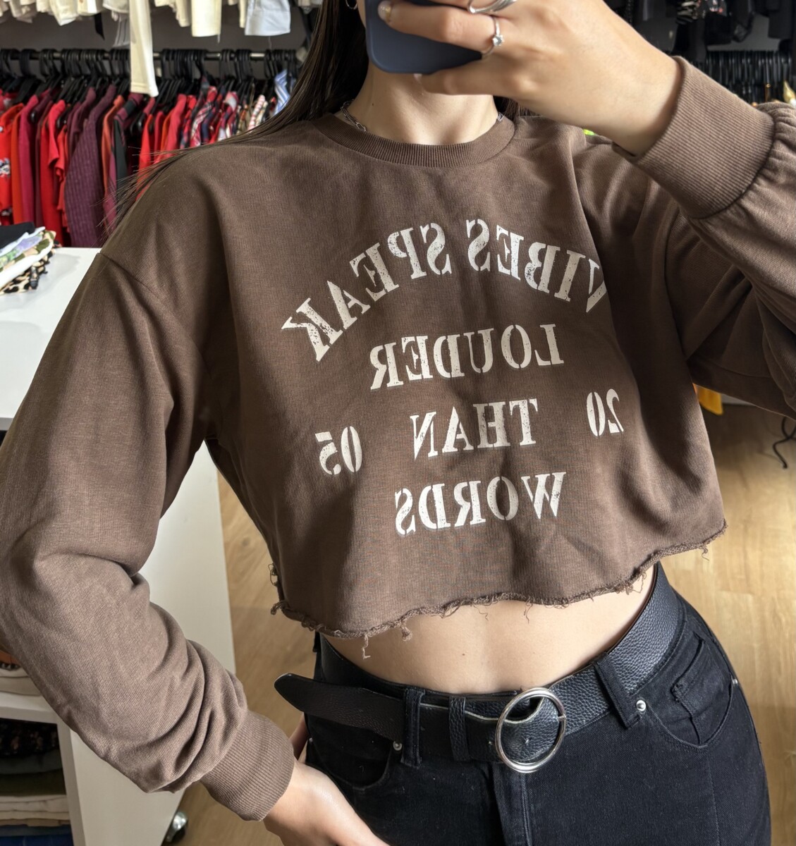 • Con letras beige “Vibes speak louder than words”