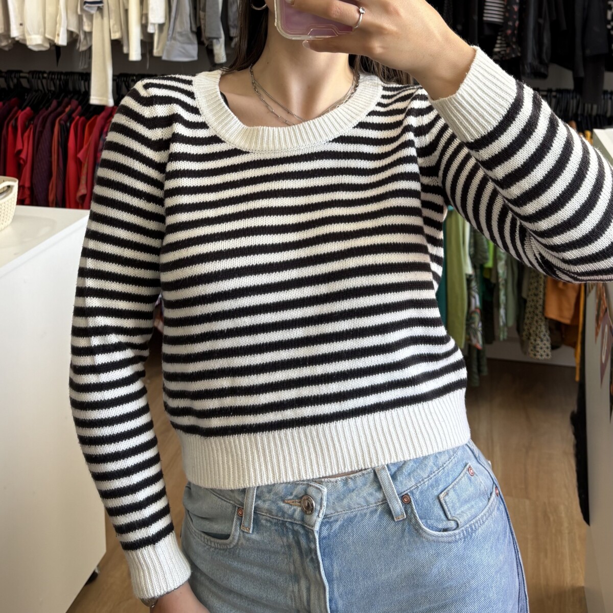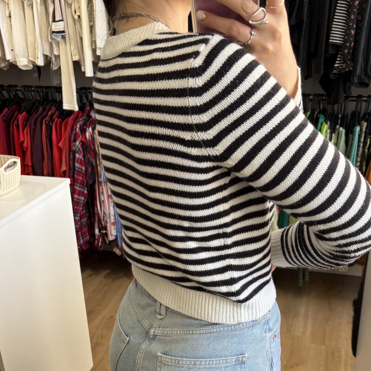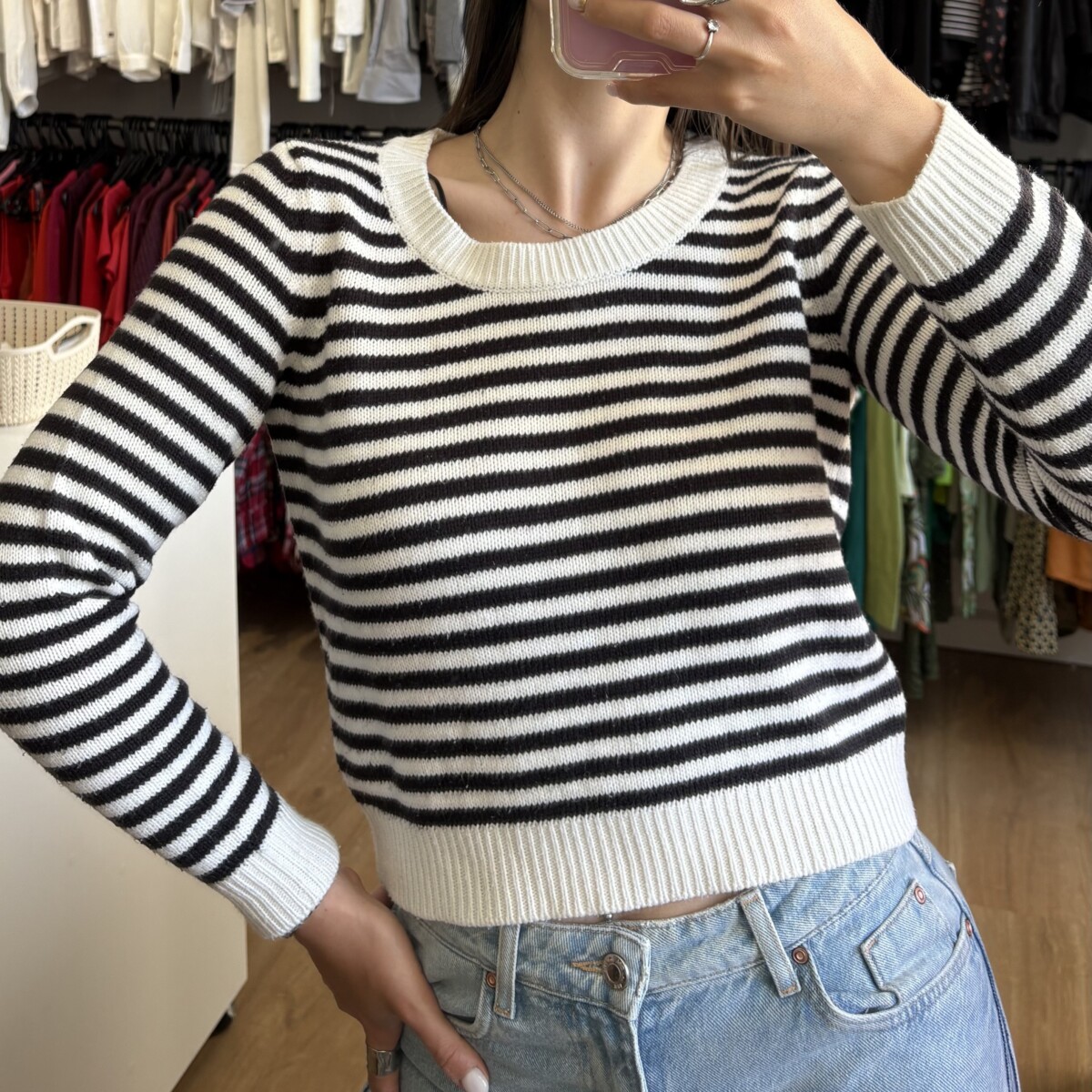 • Buzo marca HyM blanco y negro a rayas
