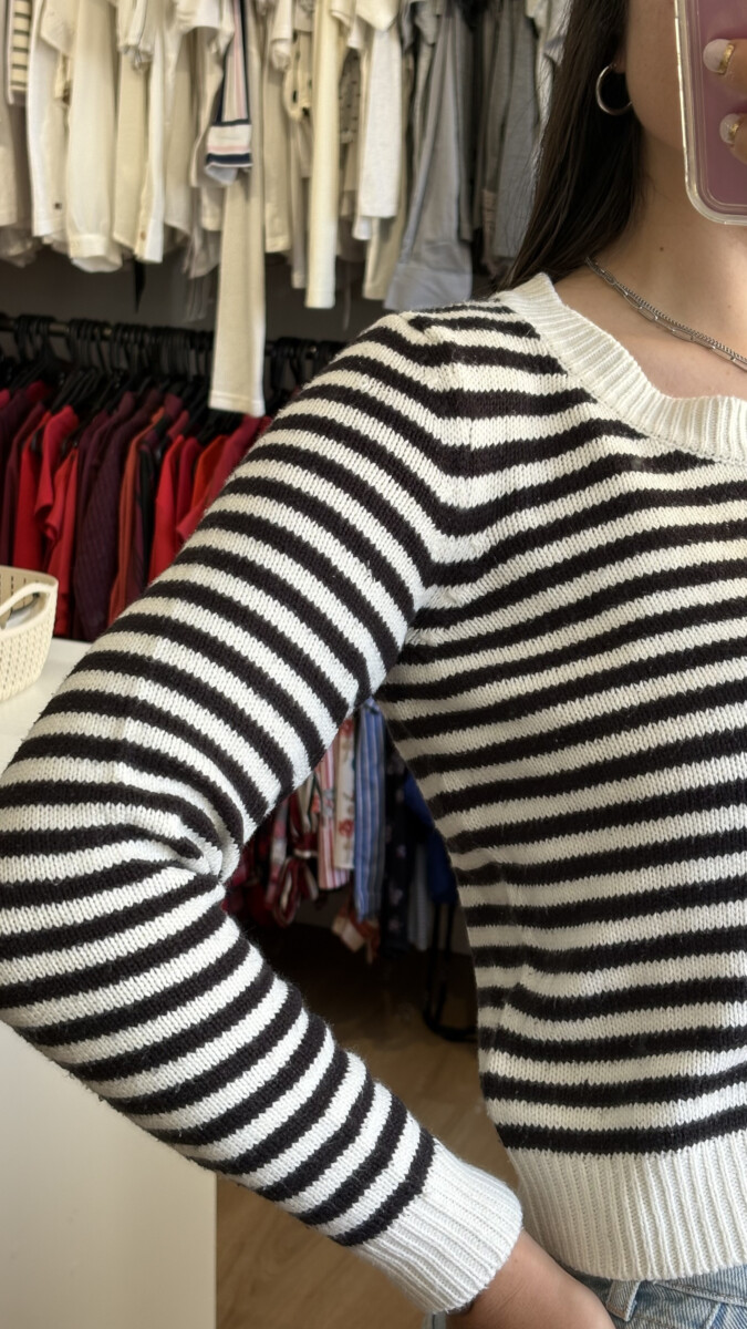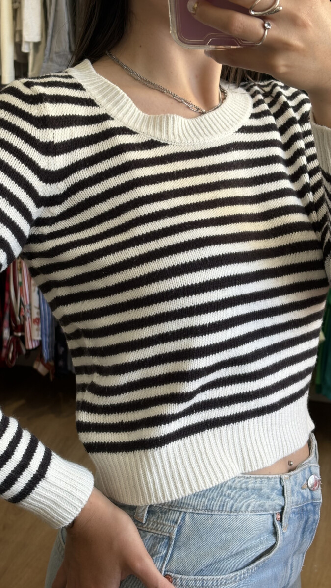 Buzo HyM blanco y negro a rayas