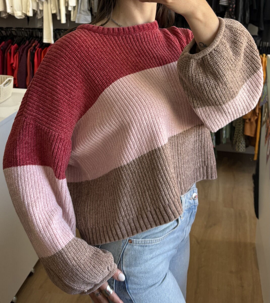 • Buzo marca Indian bordo, rosa claro y rosa viejo