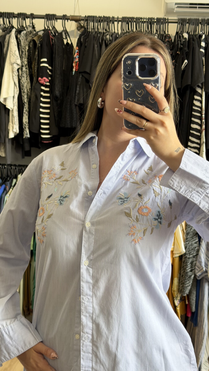 Camisa Parisien celeste bordada