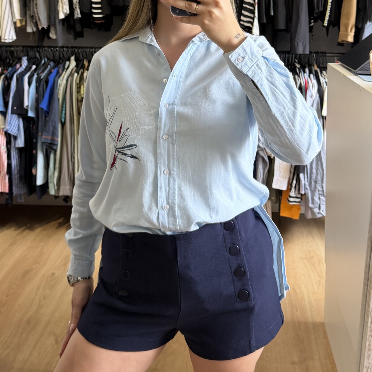 Camisa Parisien celeste con bordado