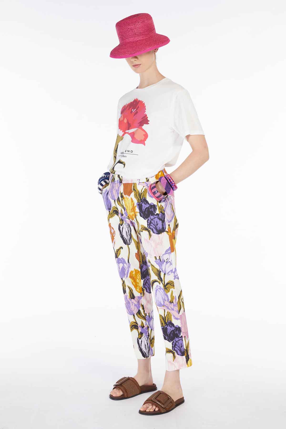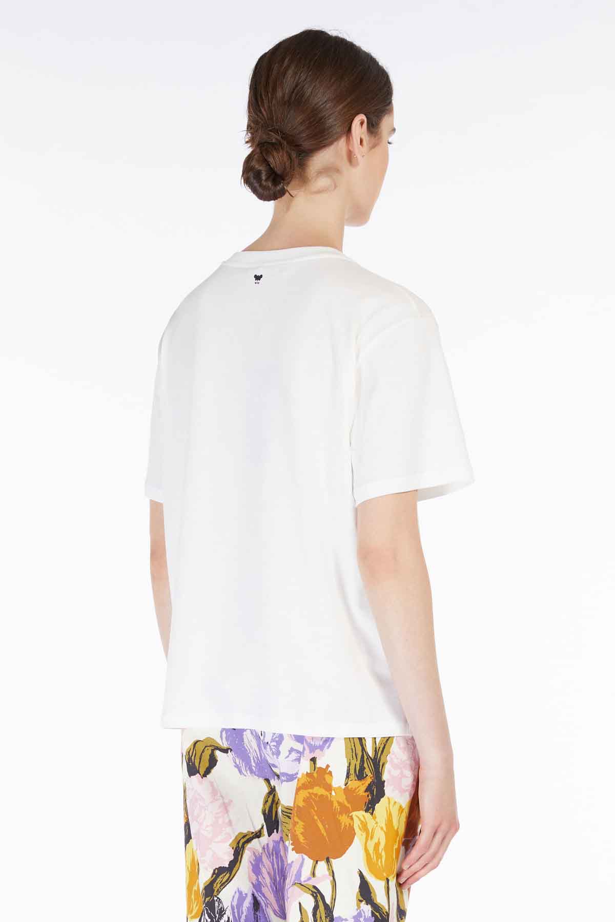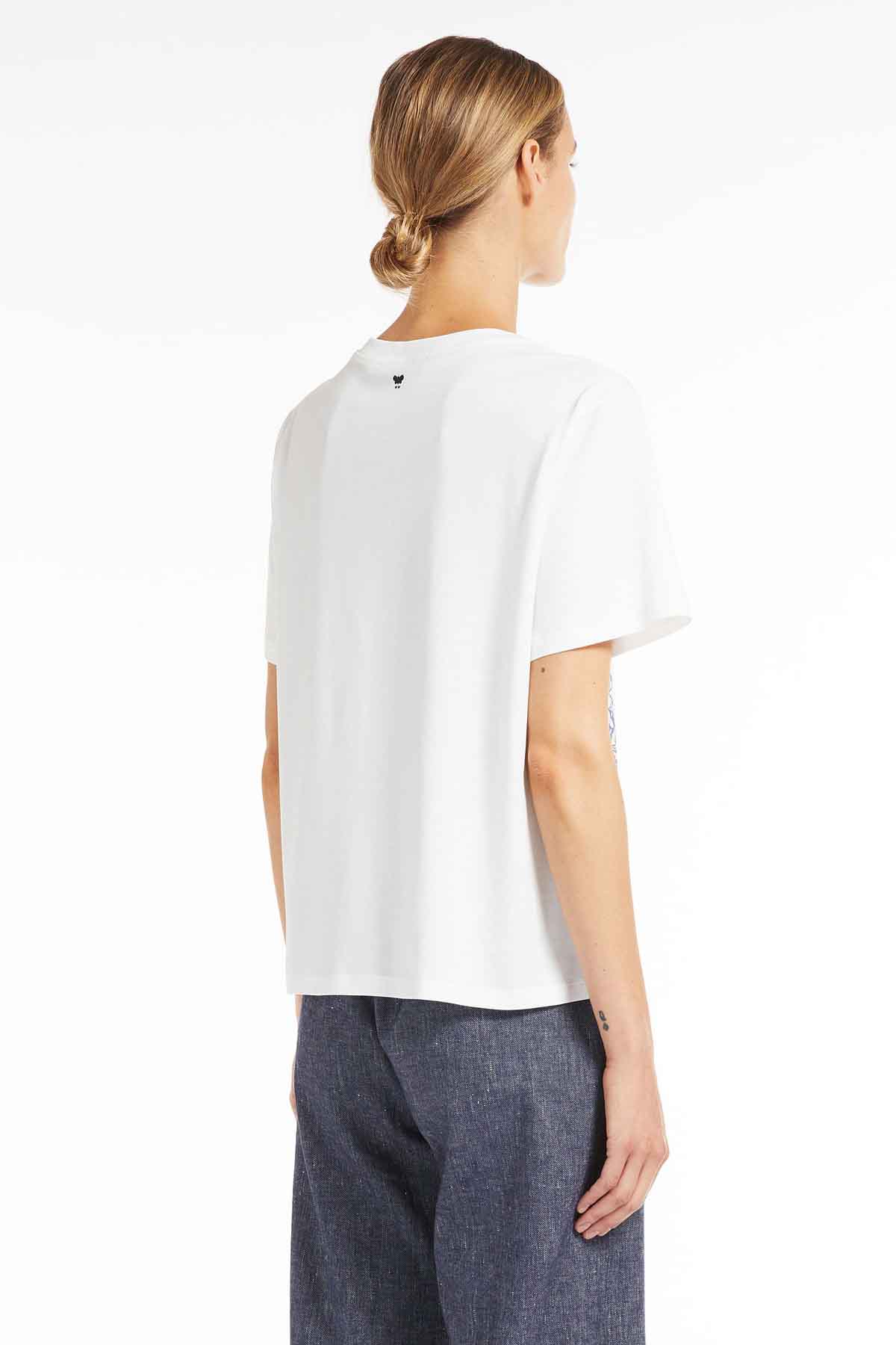 Camiseta estampada de punto de puro algodón con cuello redondo y manga corta. El motivo gráfico caracteriza la parte delantera, la parte trasera está personalizada con un logotipo estampado. Línea recta.
