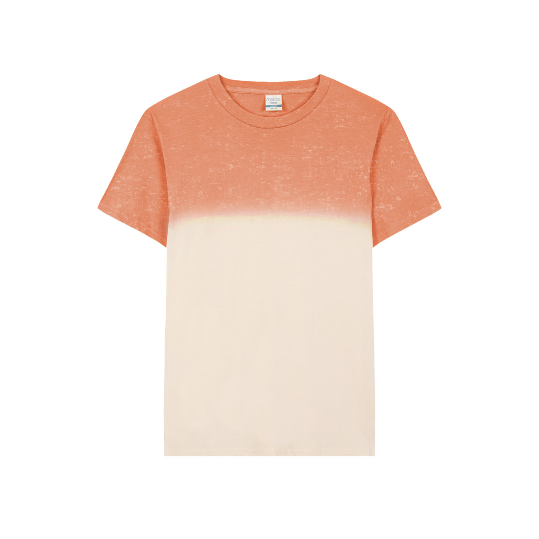 Diseño de camisetas modernas con efecto degradado en la parte superior y acabado en color natural, puedes comprarlas y personalizarlas para diferenciar tu marca en camisetas diferentes por muy poco dinero, personaliza camisetas únicas y diferentes con tu marca o frase corporativa.
