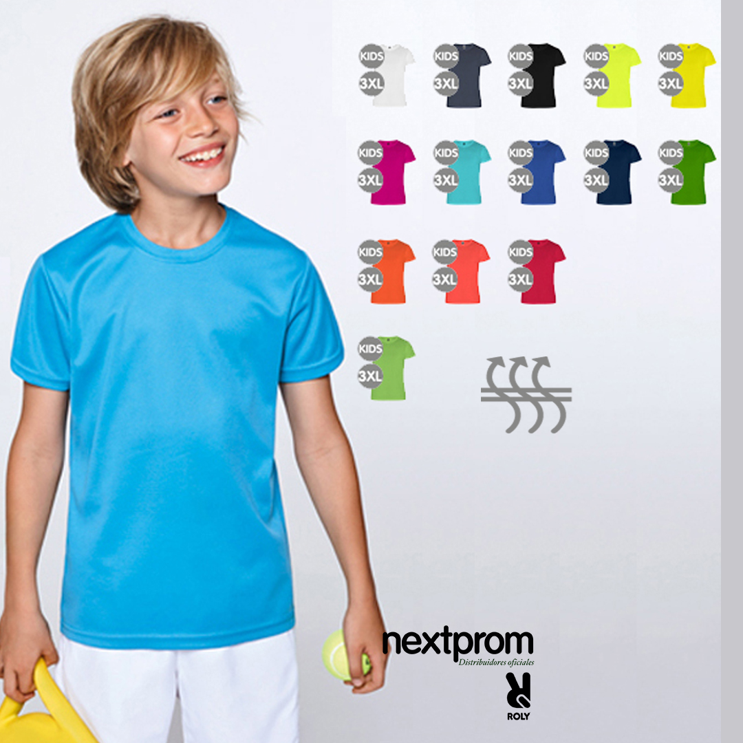 - Camisetas térmicas manga corta talla niños, marca Roly 100% poliéster piqué de 135 gramos, fácil secado.