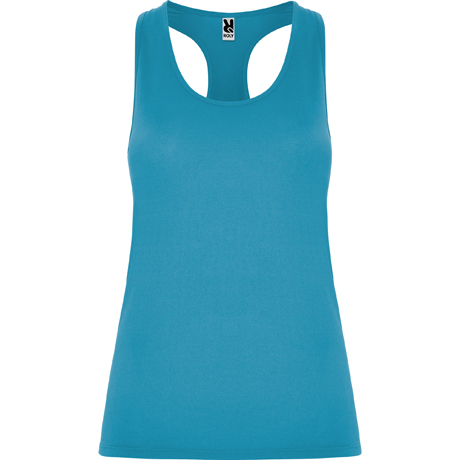 • Camisetas transpirables para mujer de tirantes con espalda nadadora, adaptable al cuerpo, corte entallado.