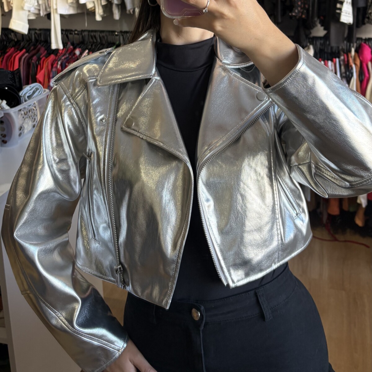 Sé el primero en valorar “Campera Only plateada, cuerina”