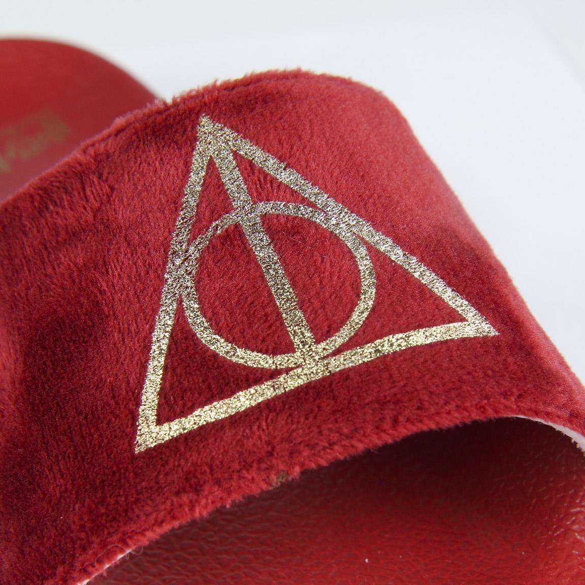 Te encantará ir a la playa o piscina con estas preciosas Chanclas de Harry Potter con un moderno diseño en color burdeos con estampado del símbolo de las Reliquias de la Muerte.