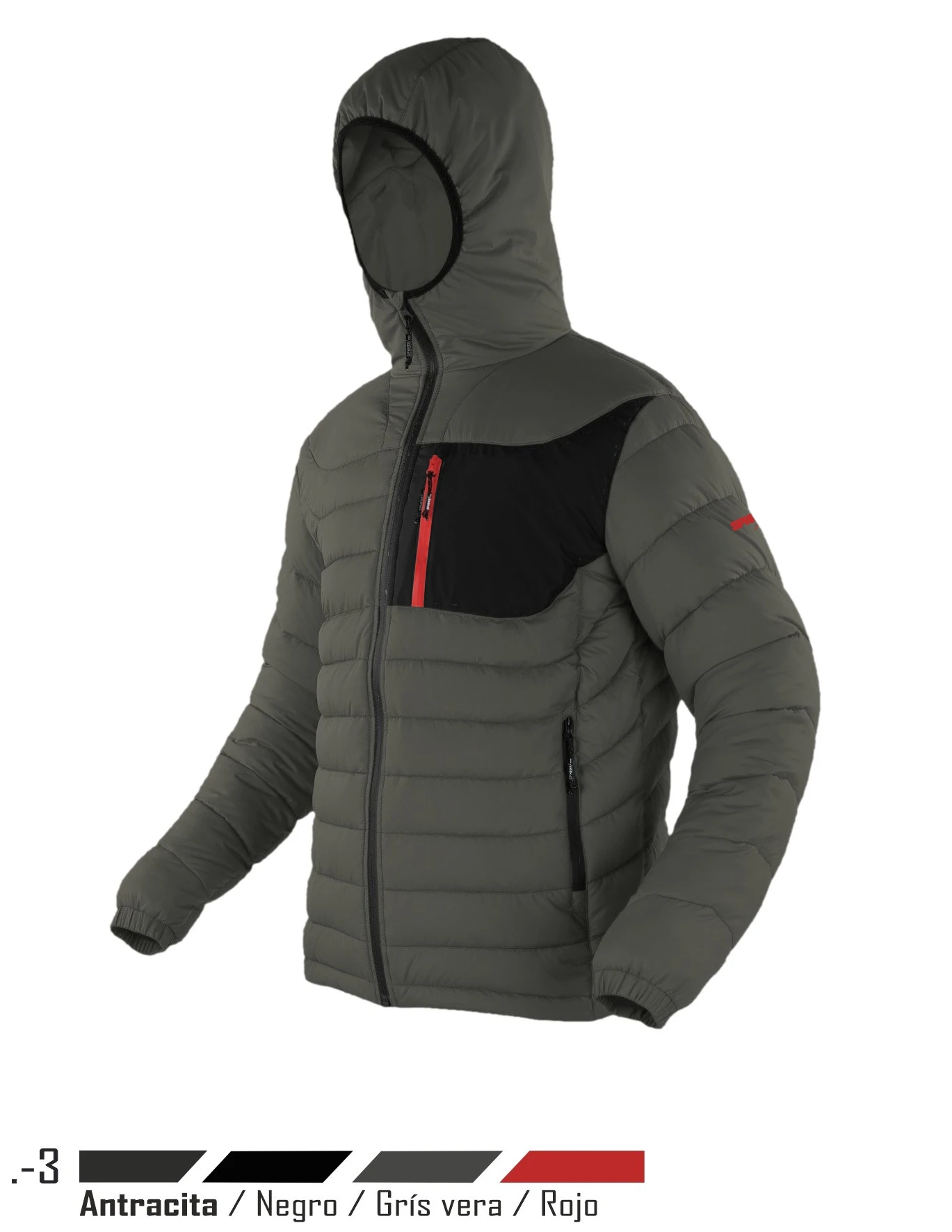 • Bolsillo en el pecho, ribete elástico en la capucha, puños bajo.