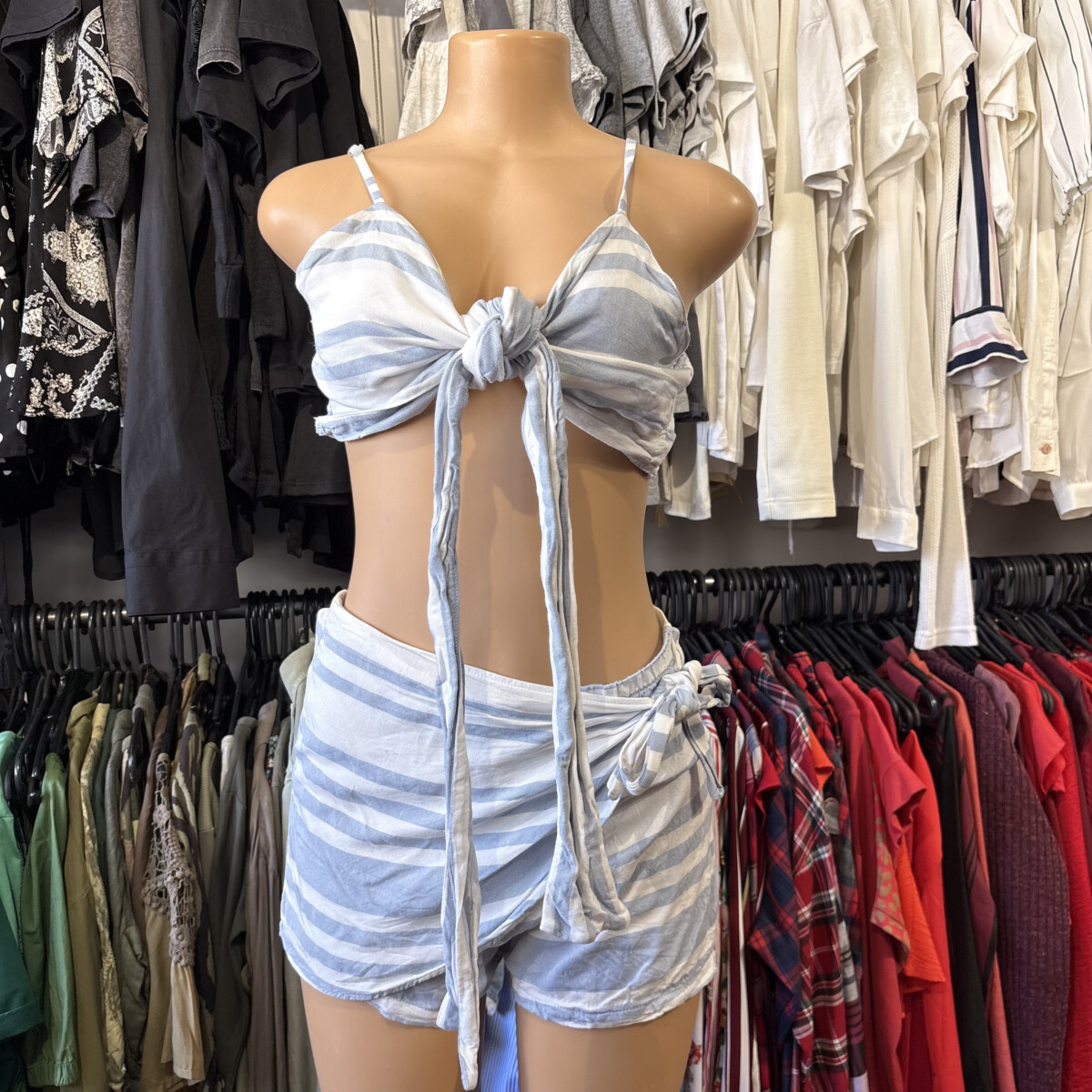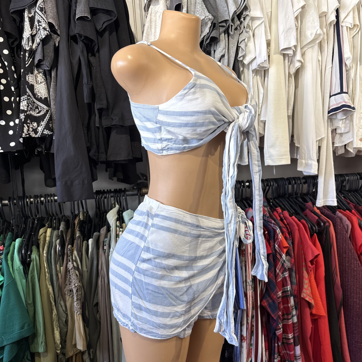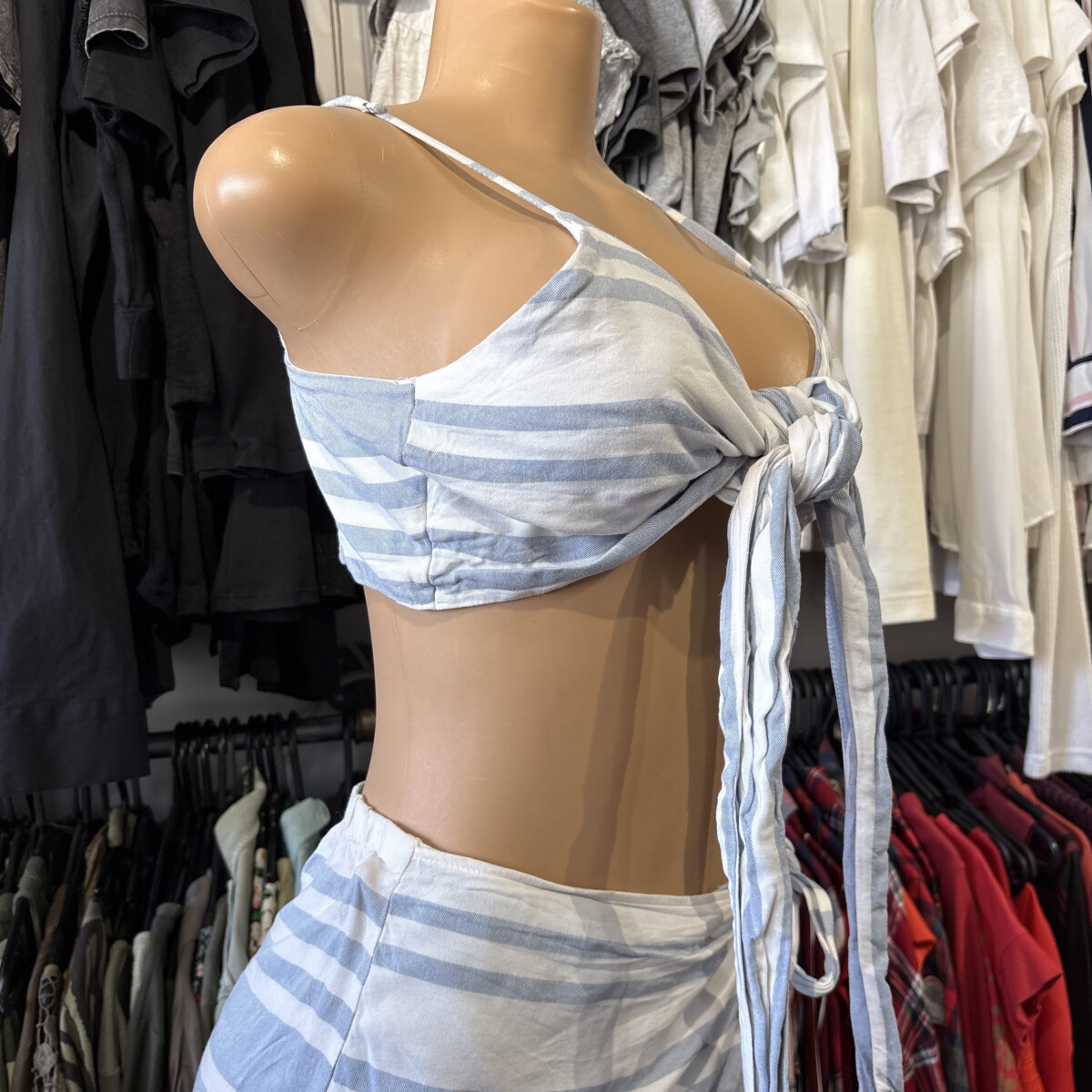 Sé el primero en valorar “Conjunto Bluesteel top + short pollera celeste y blanco”