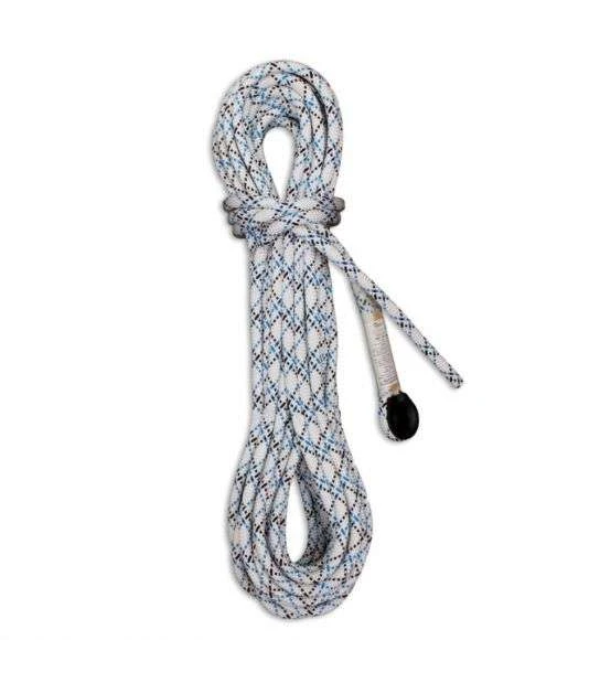 Cuerda semiestática de 10,5 mm con terminal cosido y guardacabo en uno de los extremos.