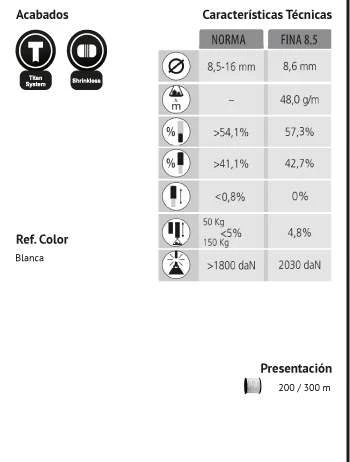 - Peso por metro: 48,3 g/m