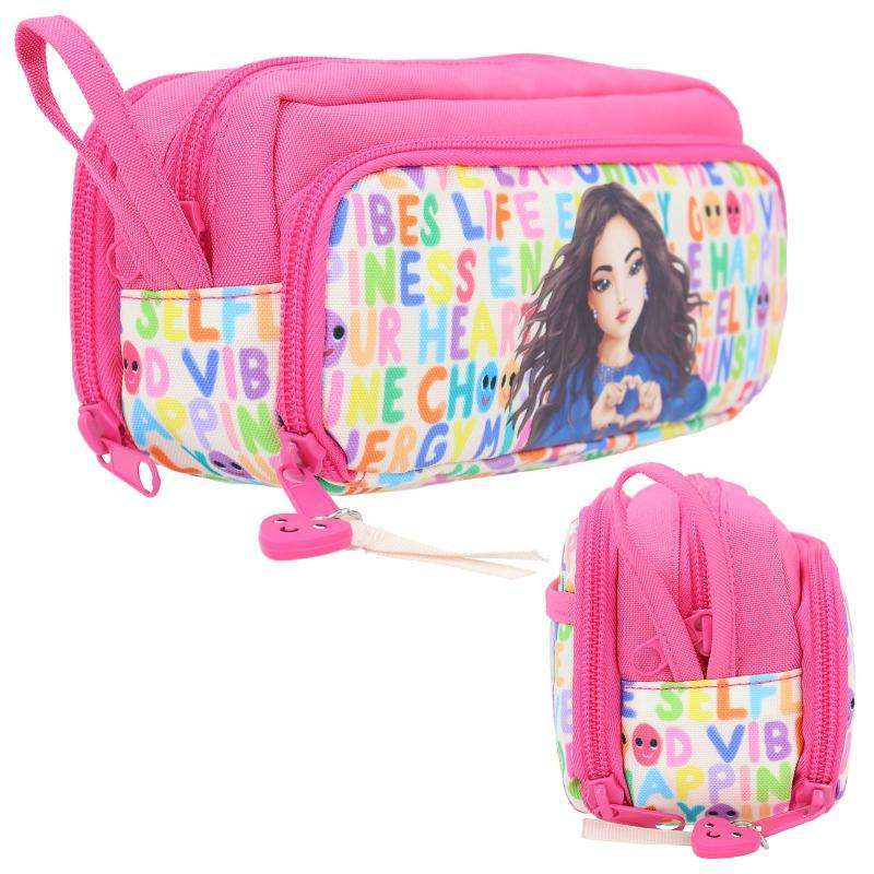 Te encantará llevar a clases este Estuche de TOP Model SELFLOVE con un moderno diseño lleno de color con dibujo de Christy.