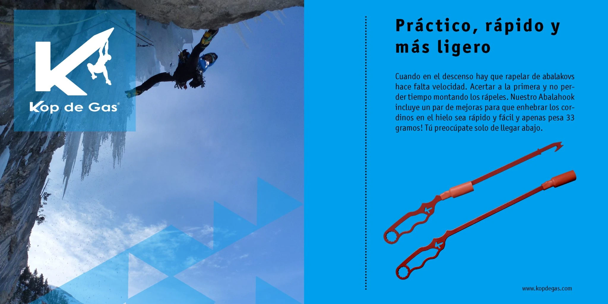 Gancho para abalakovs, para montar rápeles sobre el hielo.