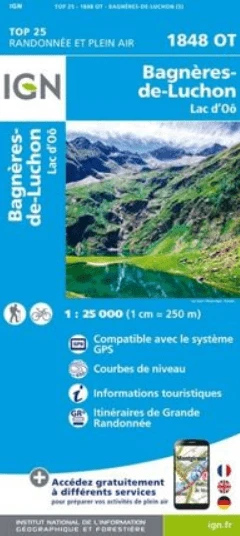 Mapa topográfico francés. IGN (Institut National de L´Infomation Geographique et Forestiere. Compatible con GPS, los planos IGN están realizados con gran precisión, a escala 1:25.000, con itinerarios senderistas e información turística.