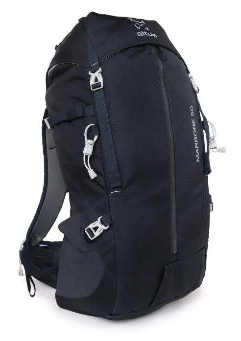 - Mochila versátil con soportes para piolets y bastones, cinco bolsillos y una cremallera frontal impermeable que hace mucho más sencillo acceder a la carga. También incorpora un compartimento para transportar el teléfono en la cintura.