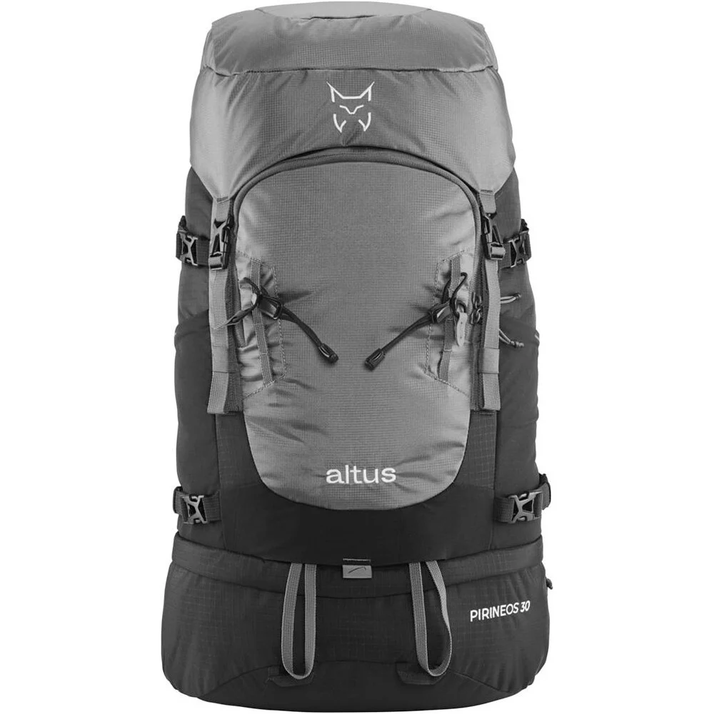 - Soporte para bastones o piolets y cintas de compresión lateral que permiten que la carga se mantenga siempre estable.