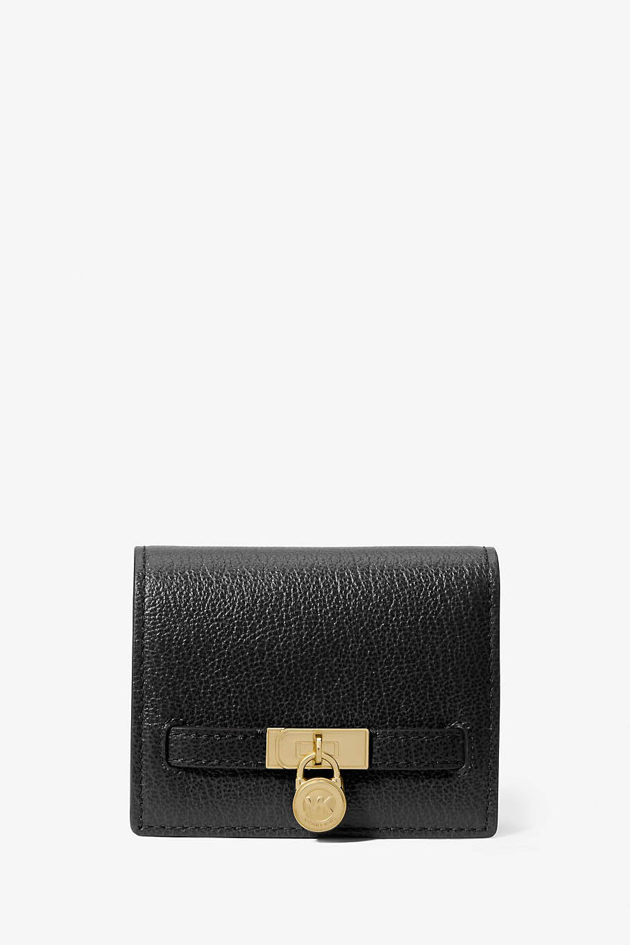 Lleva tus accesorios a nuevas cotas de elegancia con la última incorporación a la familia Hamilton Moderne. Esta cartera de piel se realza con una tira decorativa tipo cinturón que incluye un exquisito candado. Además, se abre para revelar múltiples bolsillos para tarjetas, monedas y billetes. Llévala en el bolso tote a juego.