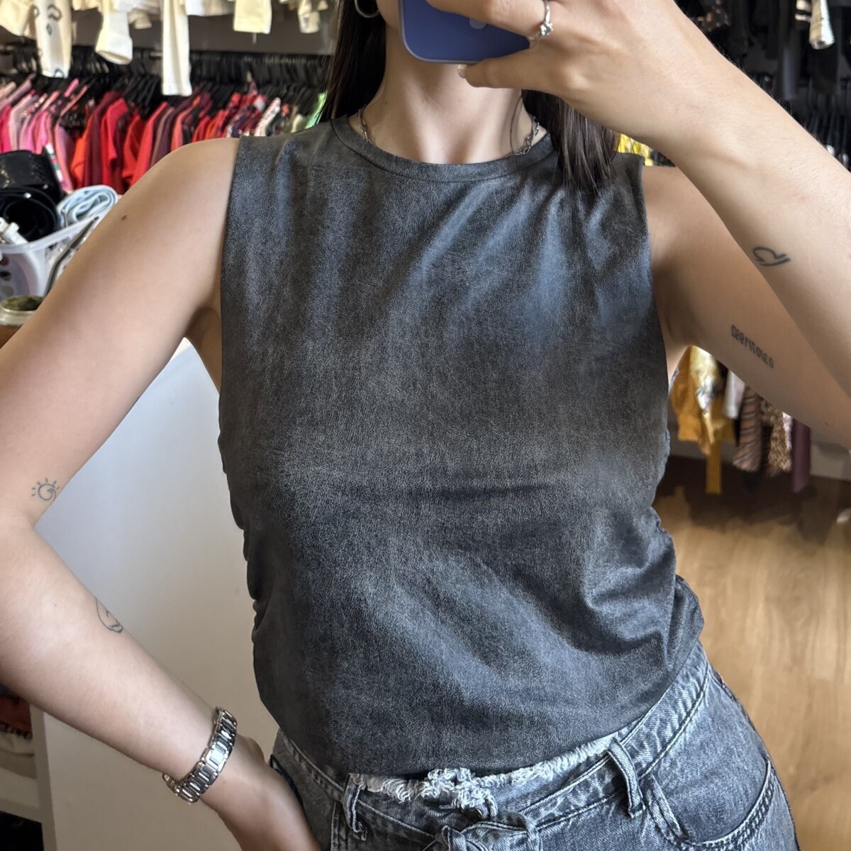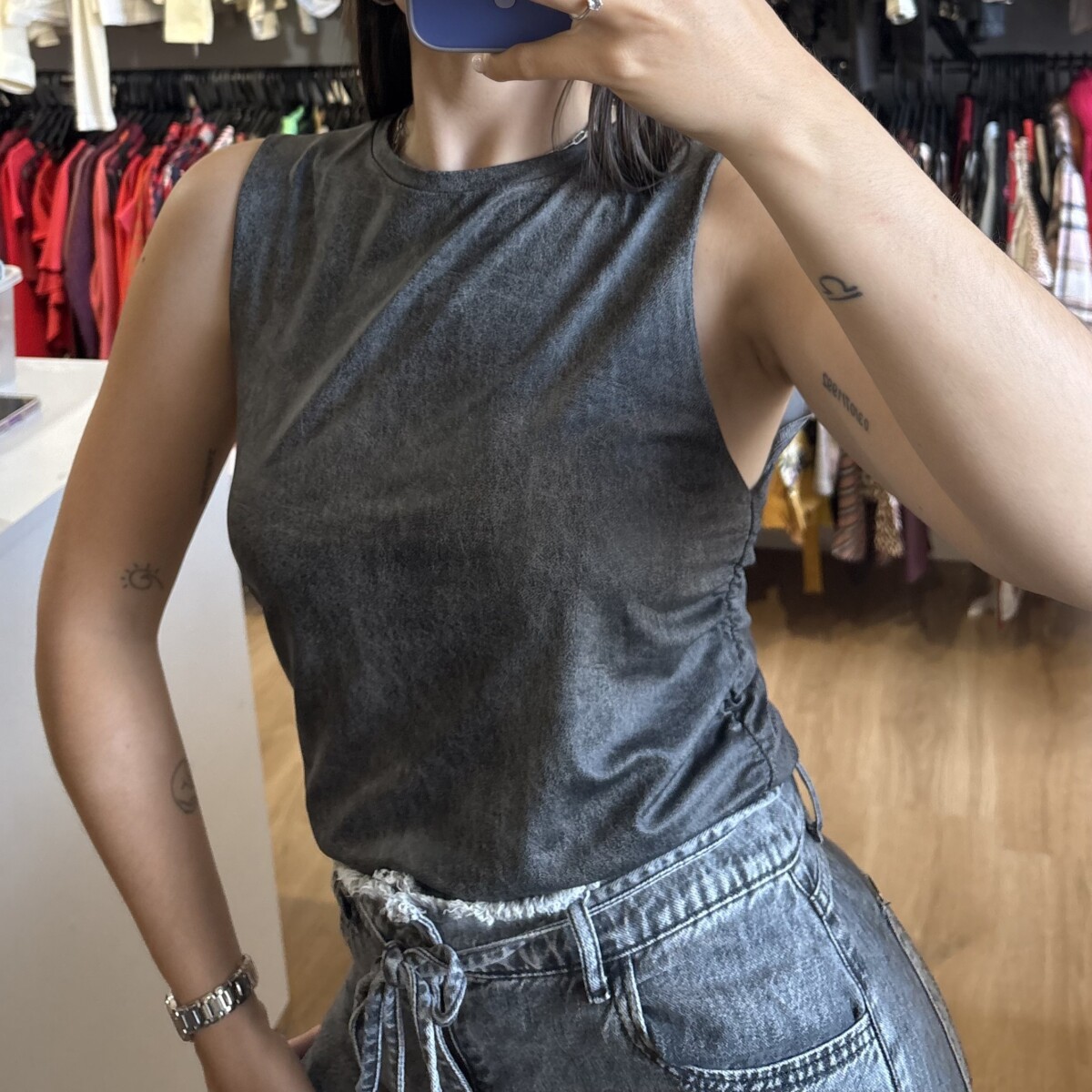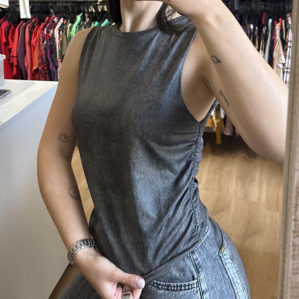 • Musculosa marca Pimenton gris con negro