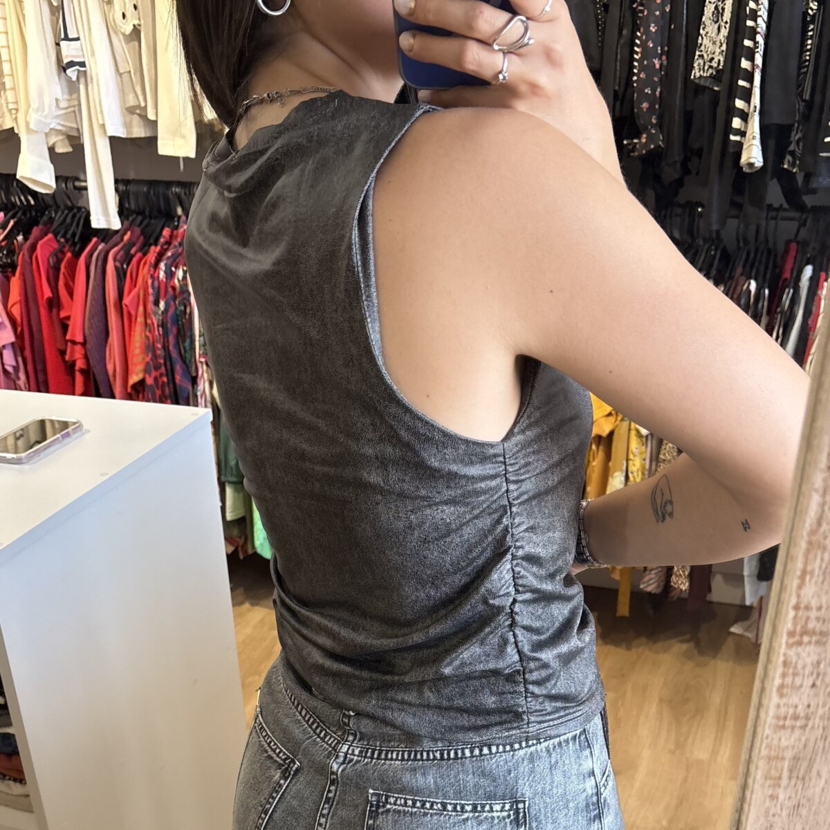 Musculosa Pimenton gris con negro