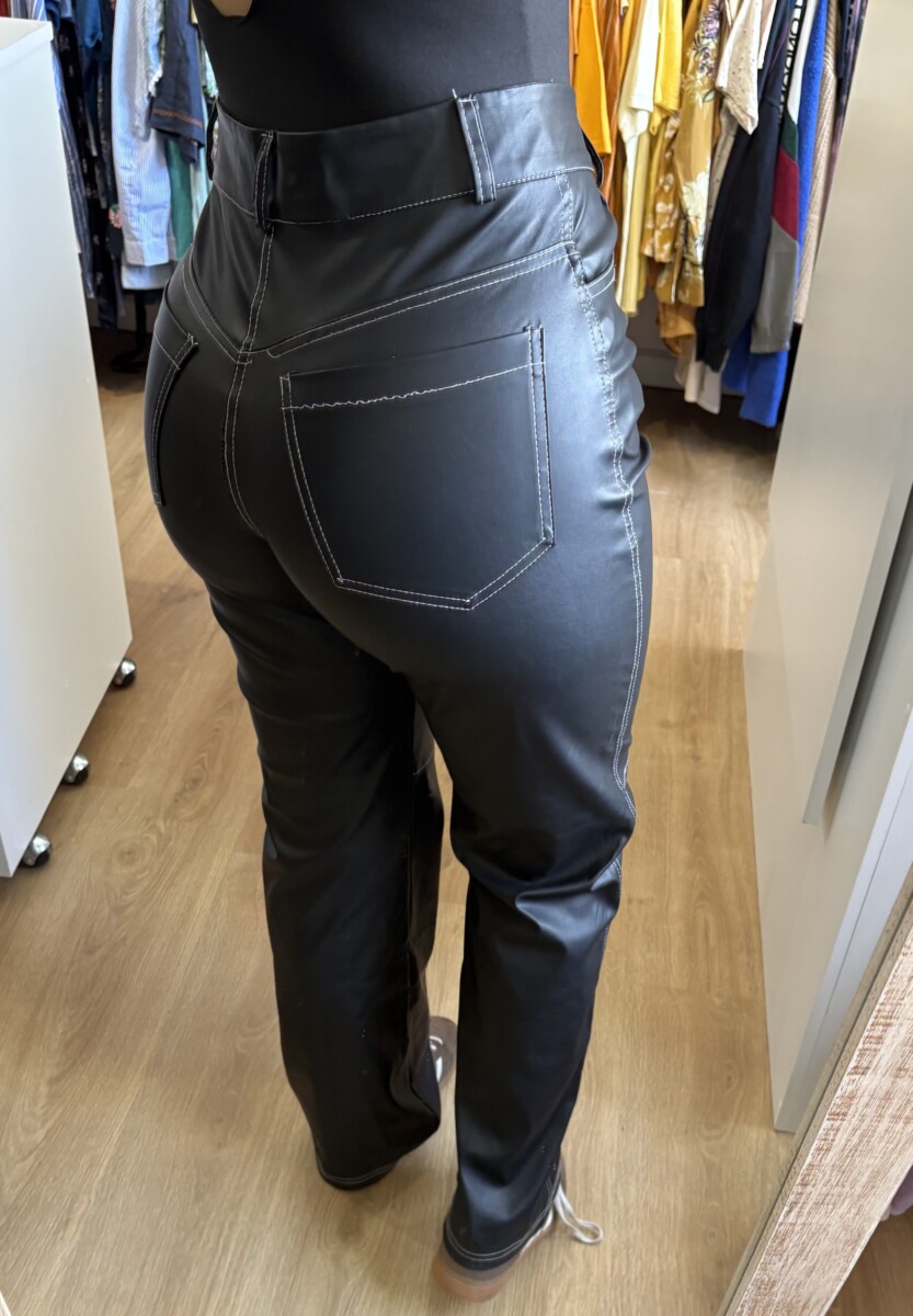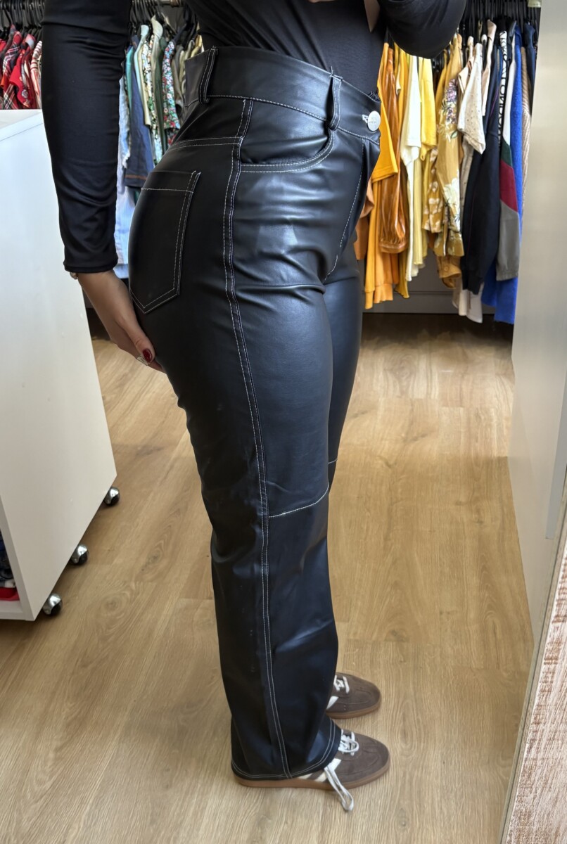 Pantalón cuerina negro Ask Denim costuras blancas