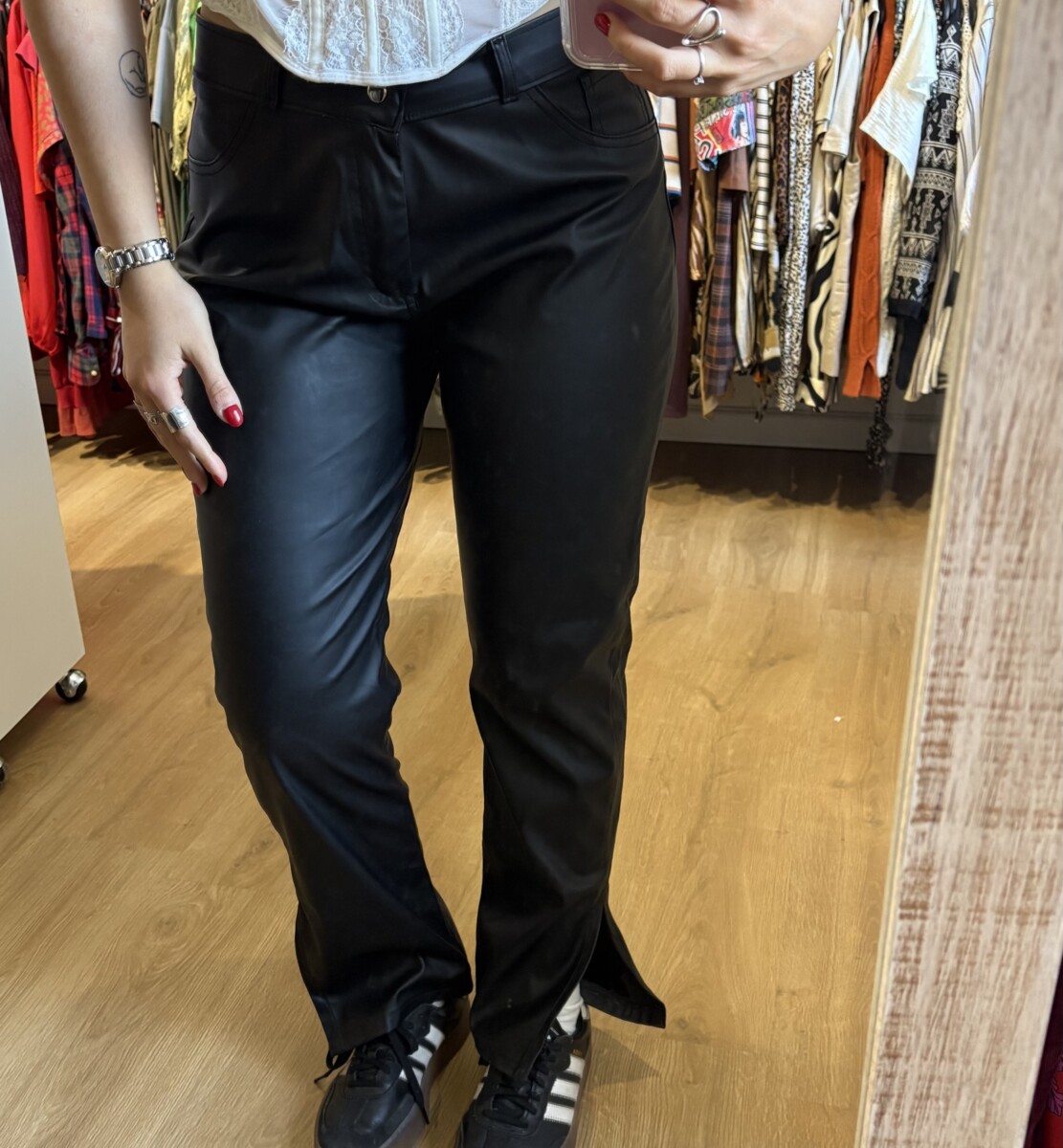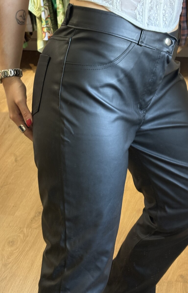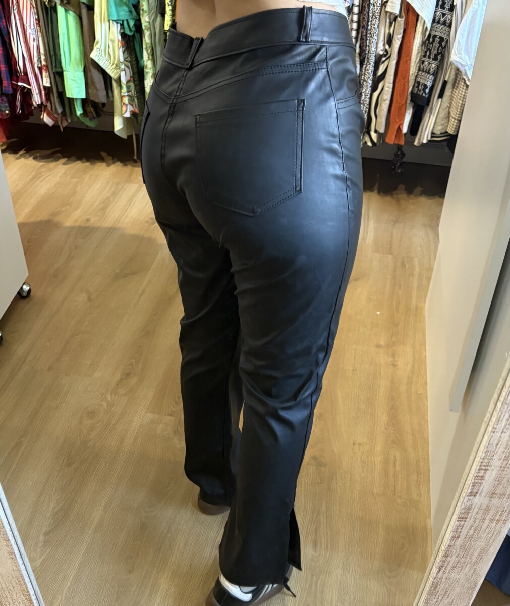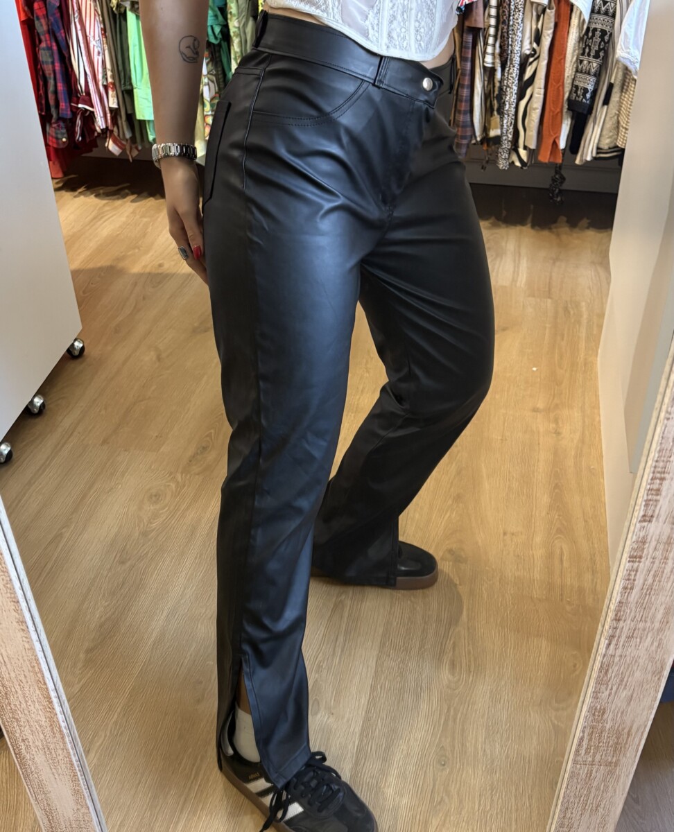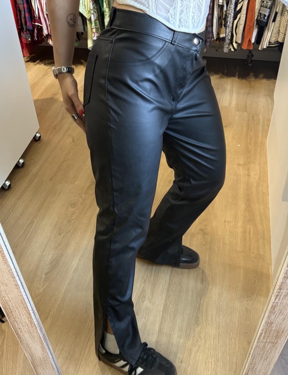 • Pantalon negro de cuerina con tajos