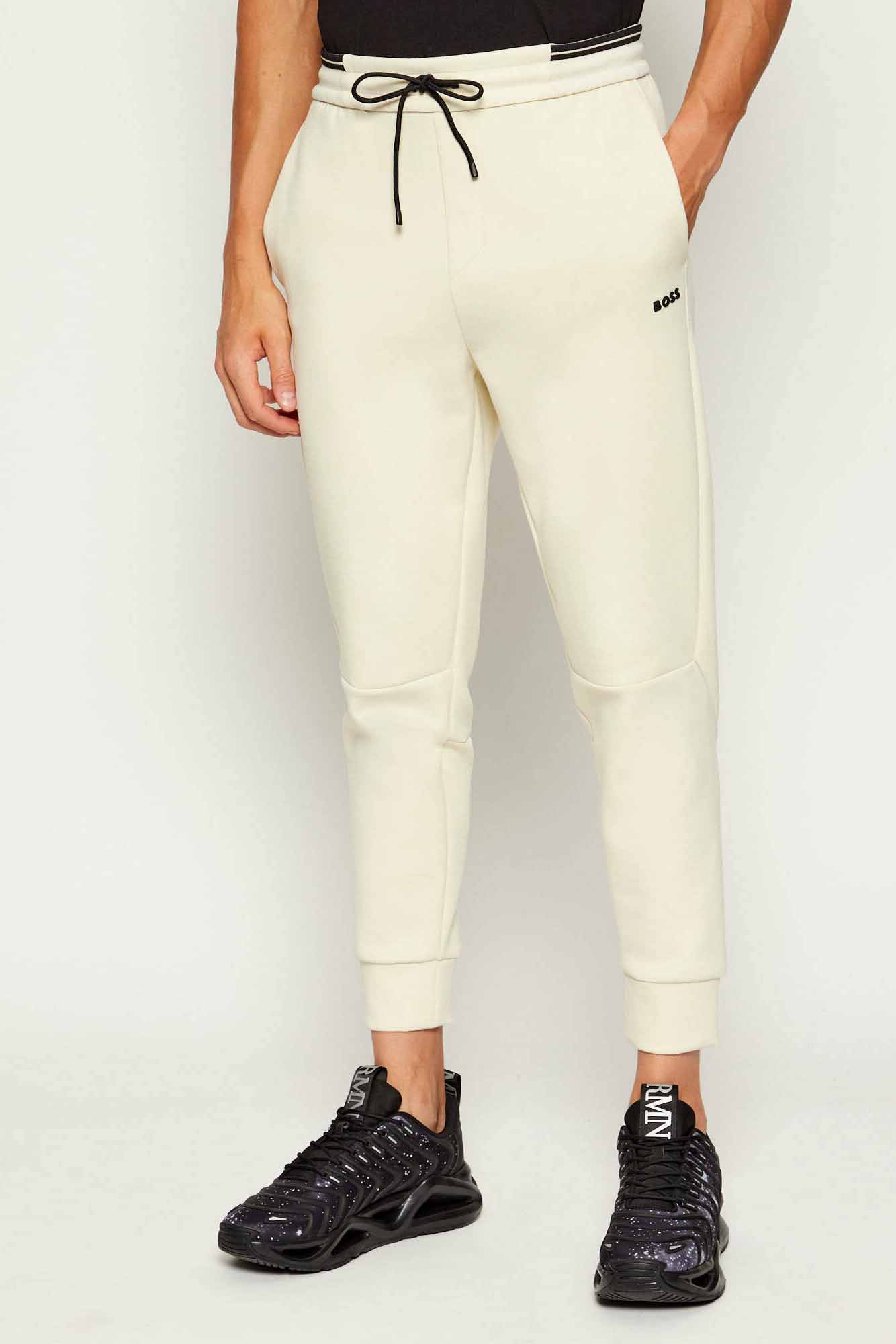Estos pantalones de chándal BOSS Hombre regular fit, diseñados con un logo moldeado y rayas de aire deportivo, son un básico fácil de combinar. De algodón con elástico. Bajos con puños.