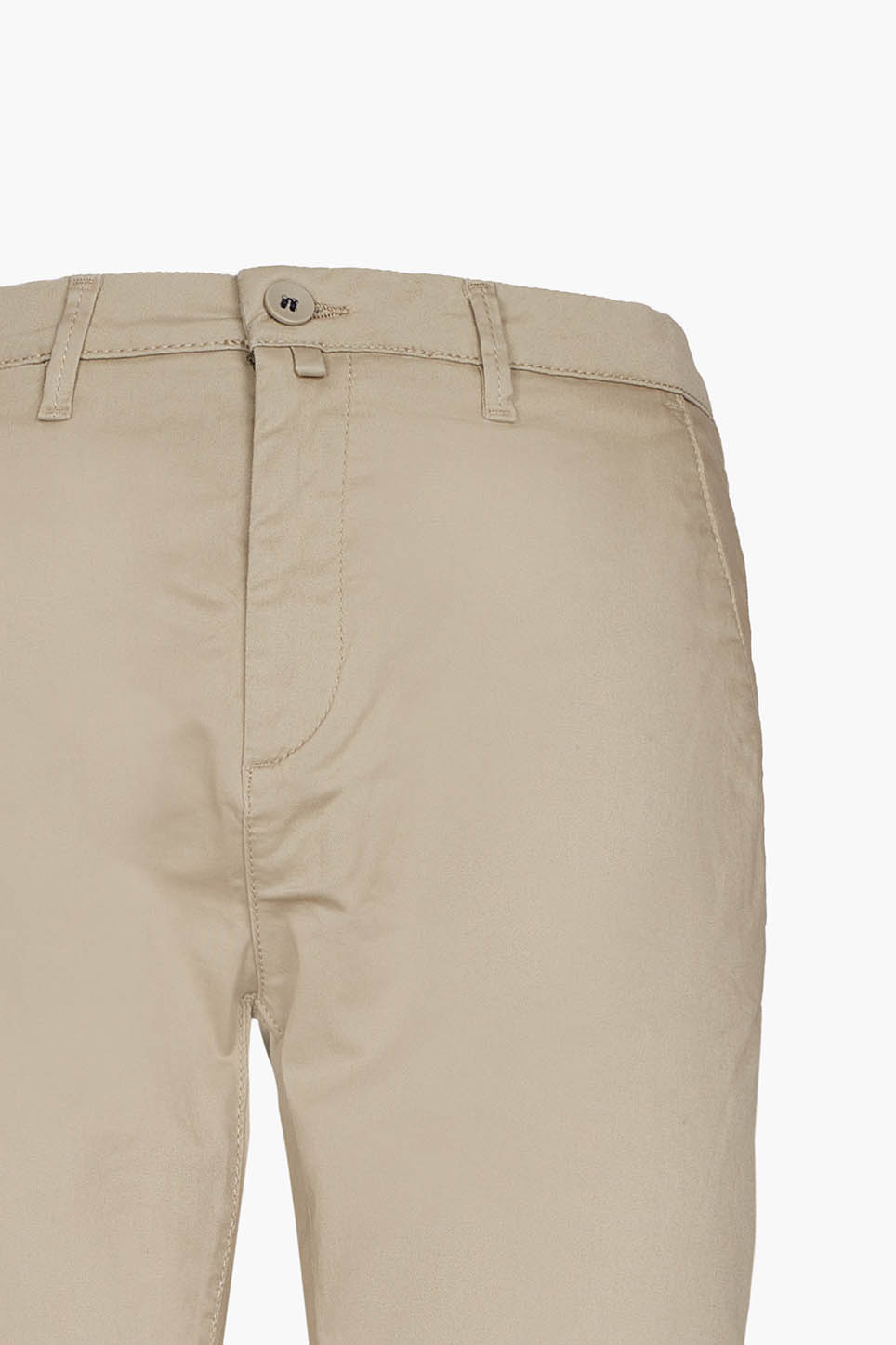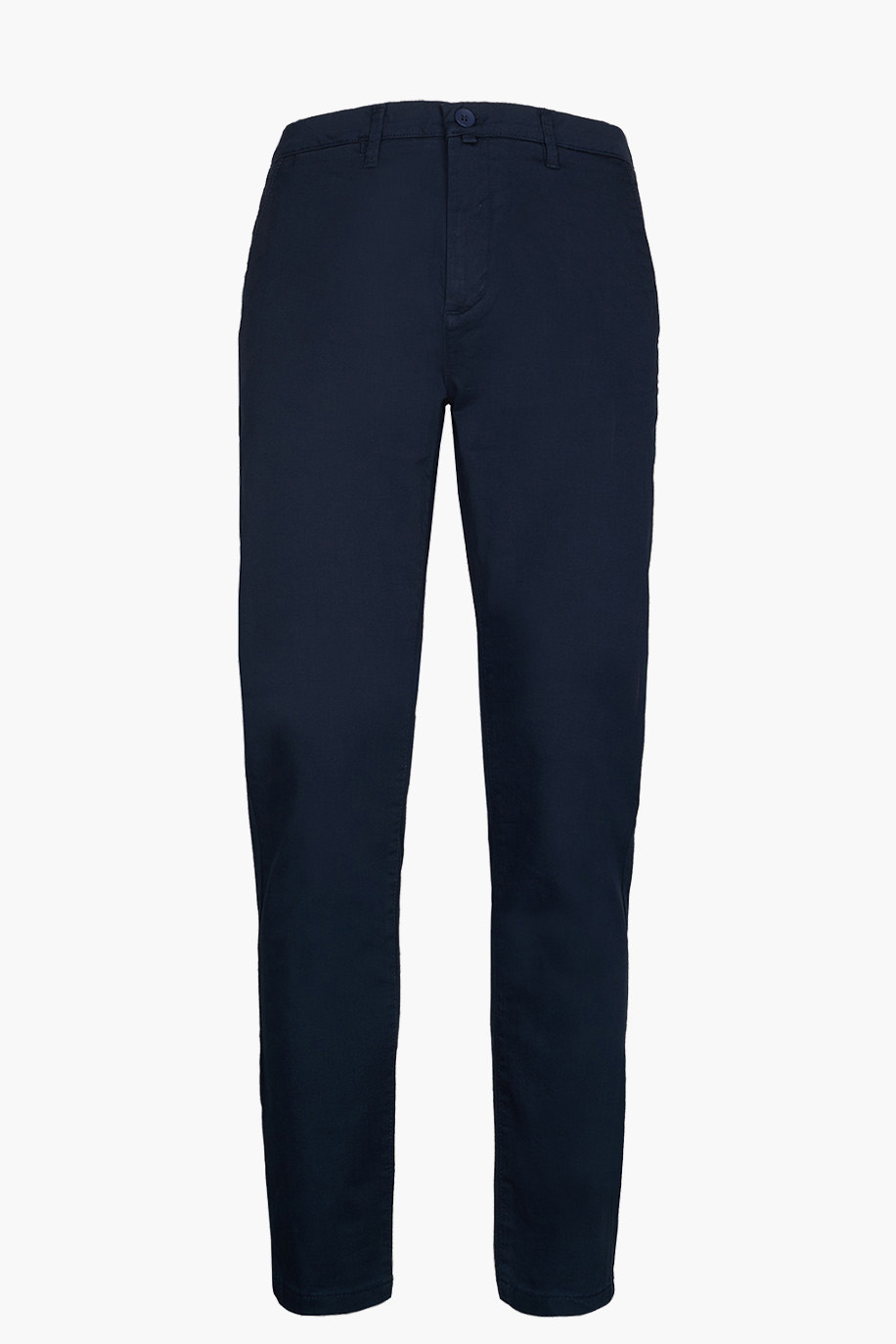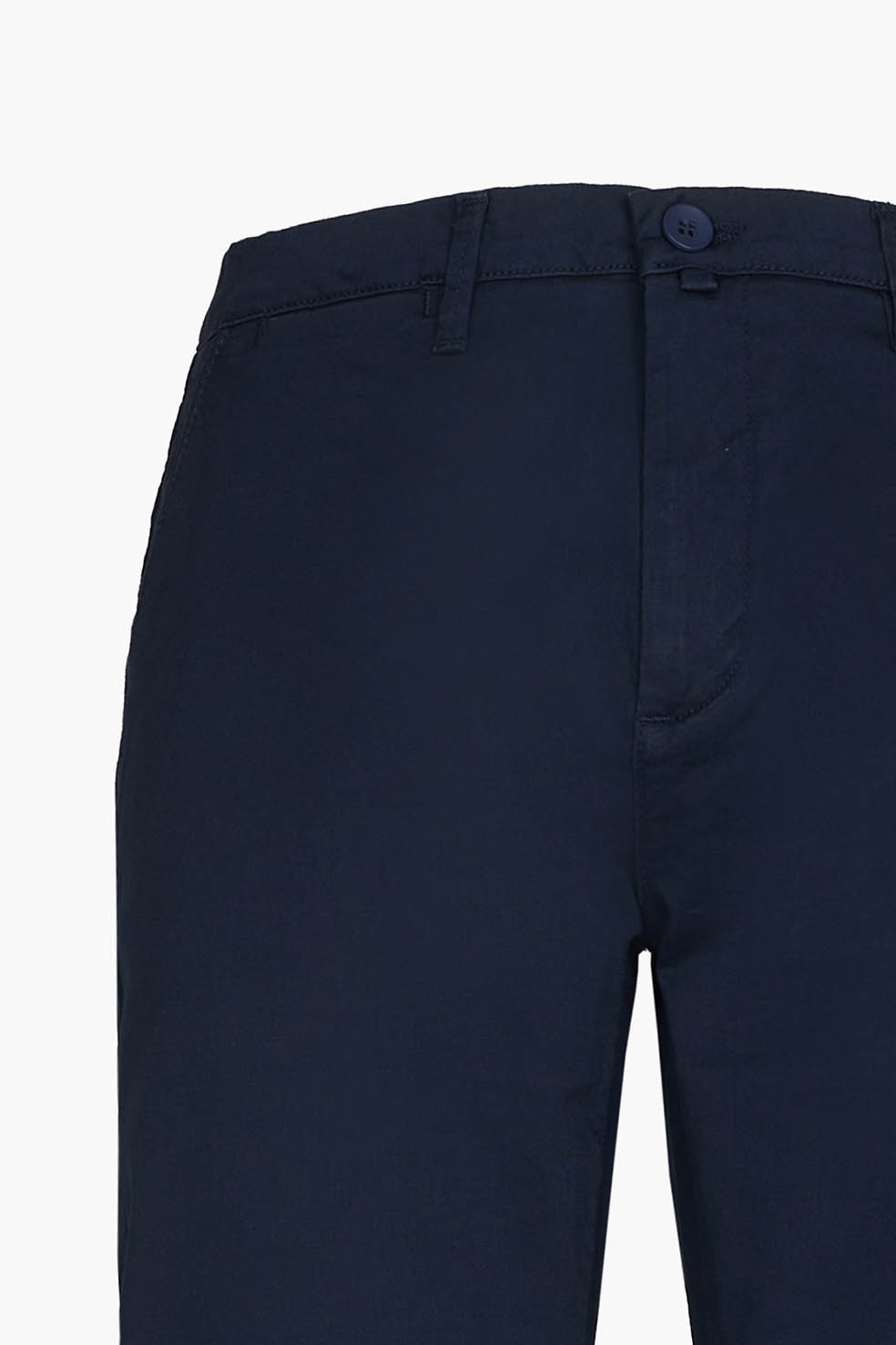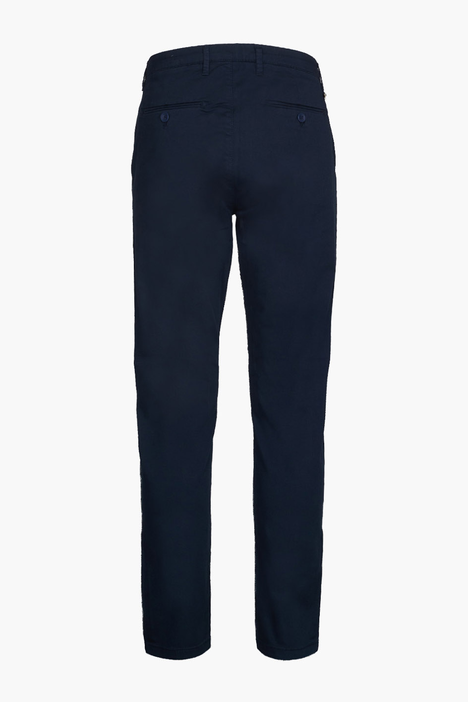 Pantalón americano con bolsillos regular fit confeccionado en tejido elástico de algodón. Cierre frontal con botón y cremallera.