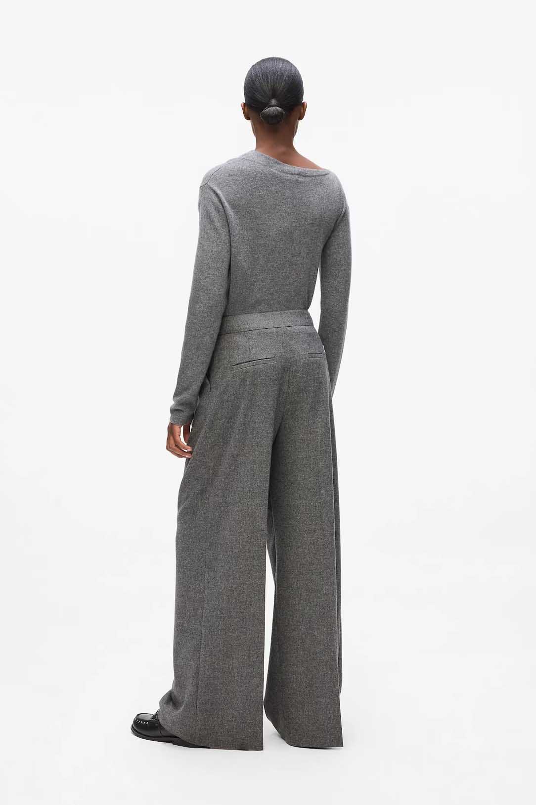 Confeccionados con una mezcla suave de lana, estos pantalones de pernera ancha combinan comodidad y elegancia. El cinturón con hebilla plateada añade definición. Perfectos para combinar con el chaleco a juego y conseguir un conjunto de lo más chic.