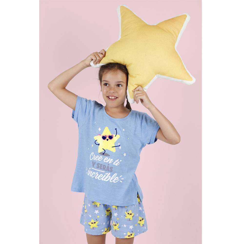Te encantará este bonito y colorido pijama Mr Wonderful para niña con un alegre diseño con estrellas y el mensaje “Cree en ti y serás increíble”.
