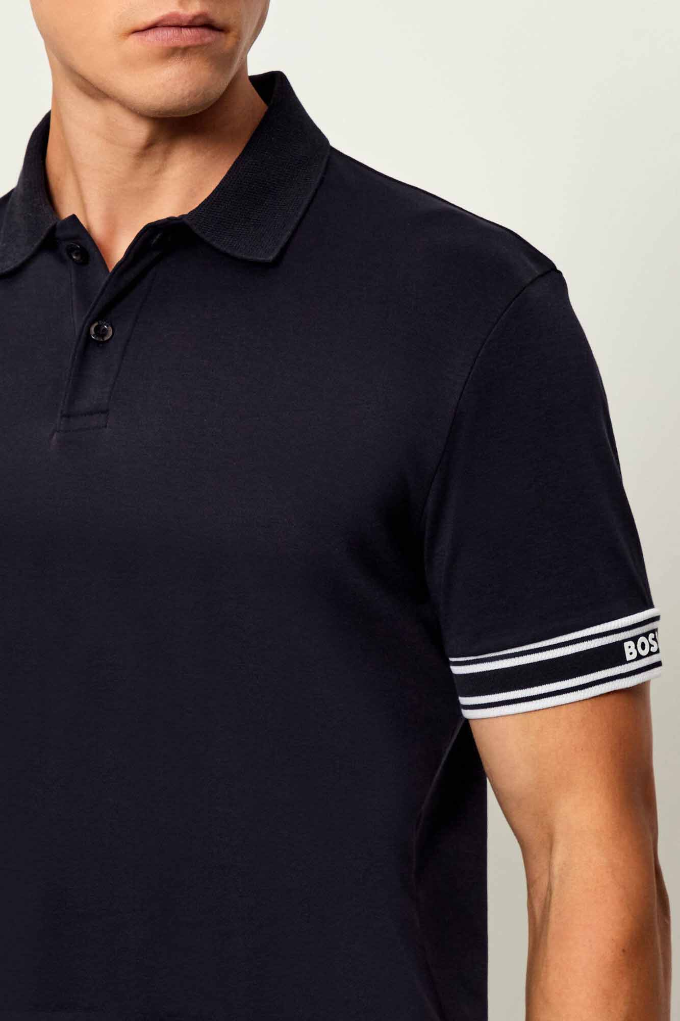 Este polo BOSS Hombre con rayas de punto de piqué y un logotipo en la manga es un clásico moderno. Slim fit. Algodón interlock con un acabado suave.
