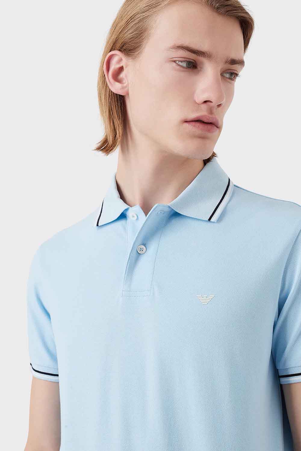 Una colección que continúa el legado de la marca, reflejado en sus formas esenciales, ideada para cualquier época del año. Una selección de prendas básicas y versátiles que no deben faltar en el armario masculino. El polo es la prenda versátil por definición, y Emporio Armani lo personaliza y le da un aire original gracias a los detalles con logotipo y a los tejidos de calidad. Este modelo para hombre está confeccionado en piqué de algodón elástico y se distingue por la icónica águila bordada en el pecho.
