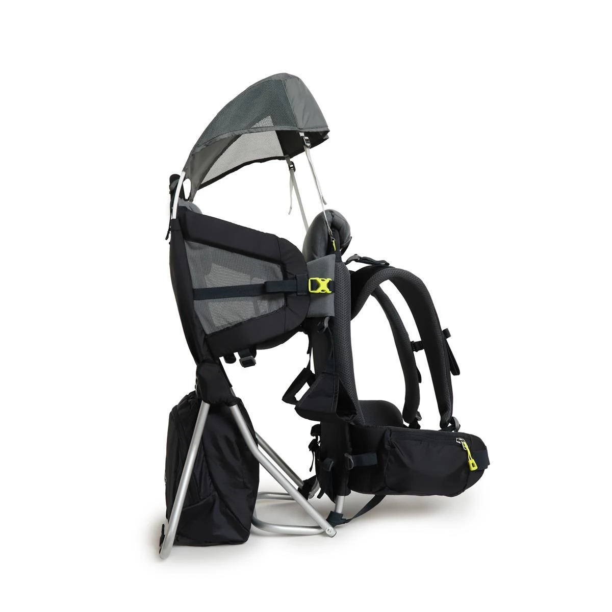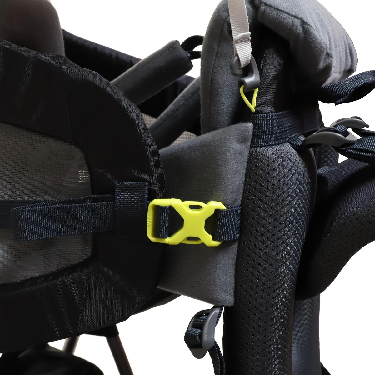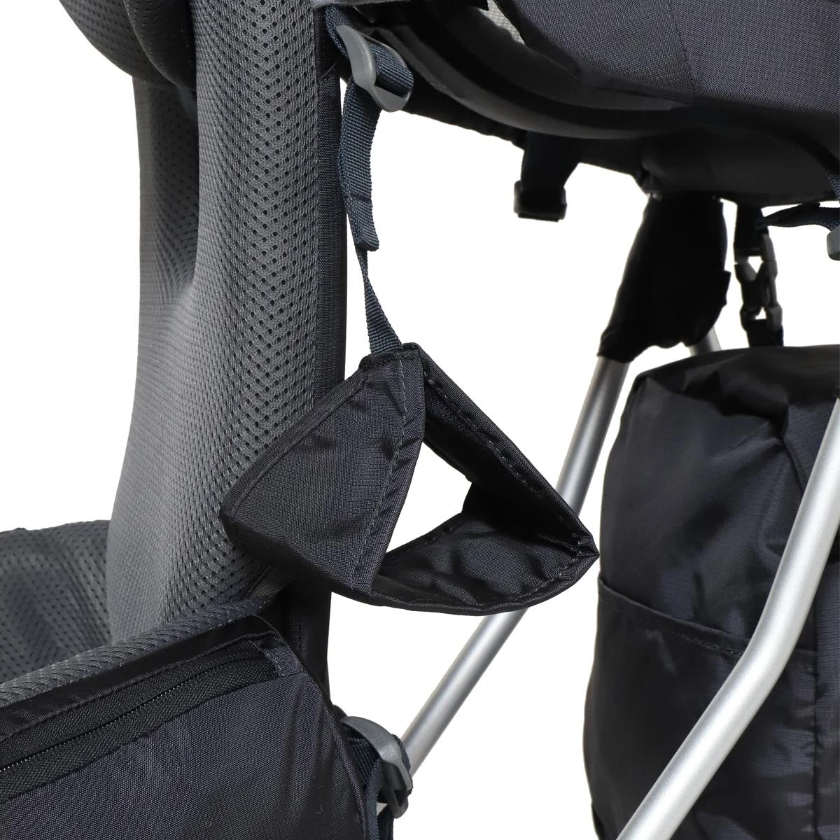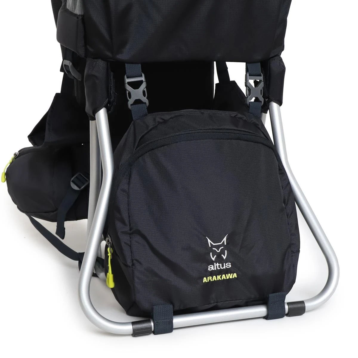 El portabebes Arakawa cuenta con un baste de aluminio que forma la estructura que da soporte estable a todo el conjunto, permitiendo abrirlo para mantenerlo en apoyo en el suelo con total seguridad.