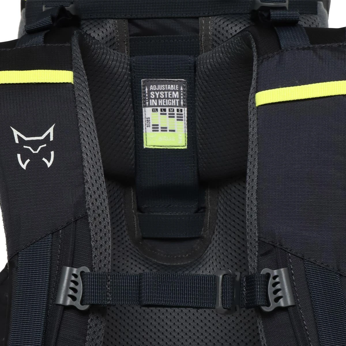 - La espalda está equipada con el sistema Aishos con regulación en altura, permitiendo varias tallas en una misma espalda.