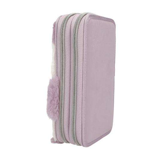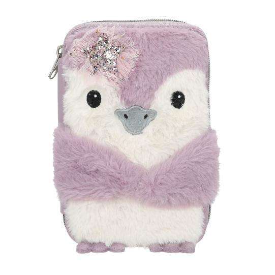 Este original estuche de Princess Mimi en colores lila ahumado y crema lleva un pingüino monísimo de peluche en la cara delantera. Ojos bordados, la estrella brillante, los pies y las alas hacen de este diseño una auténtica cucada. Las alas están provistas de imanes y pueden cerrarse sobre la barriga del pingüino. Los dos compartimentos separados vienen completamente llenos con 12 lápices de colores gruesos, 1 lápiz grueso, 2 rotuladores de gel de purpurina, sacapuntas, goma de borrar y regla con plantillas.
